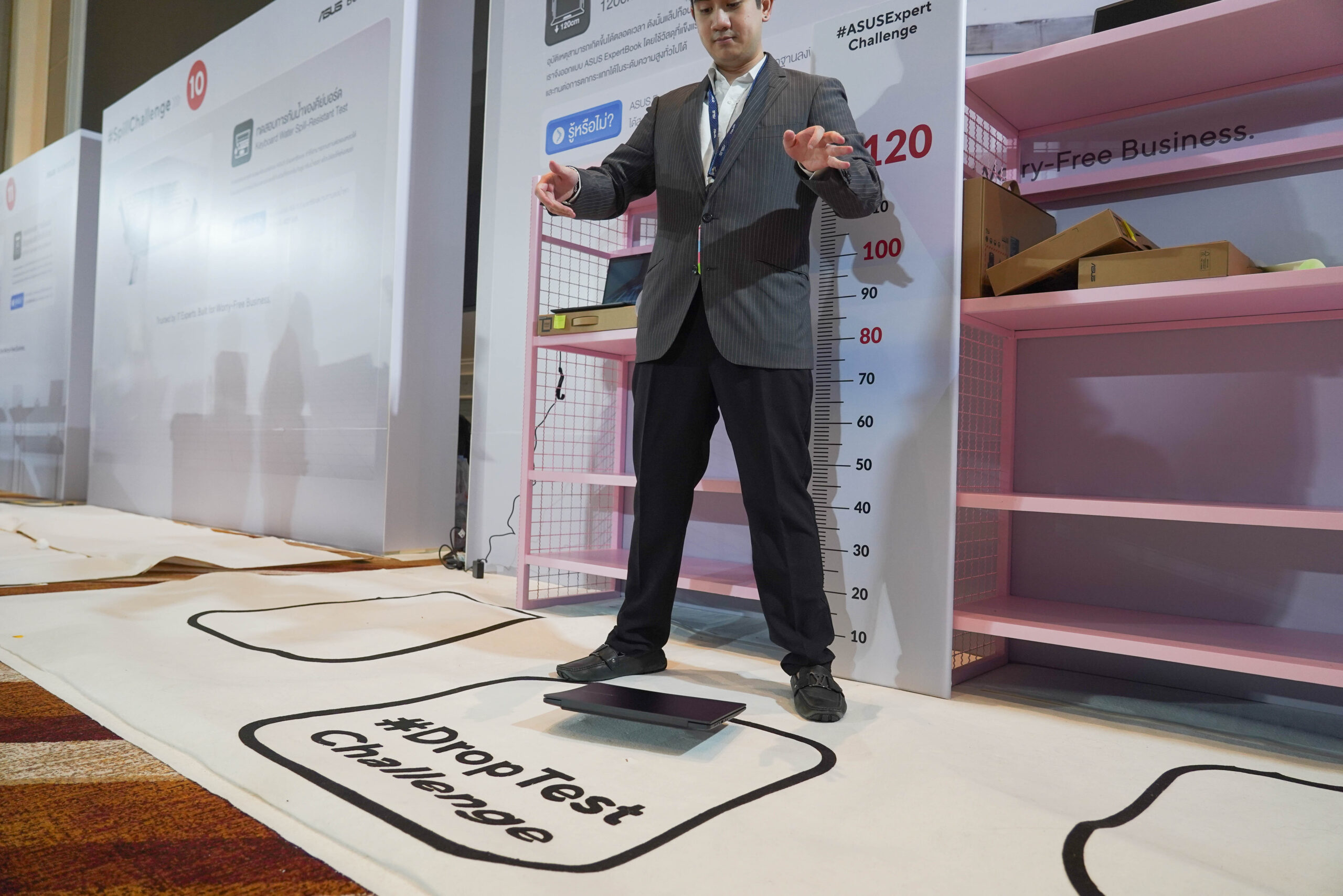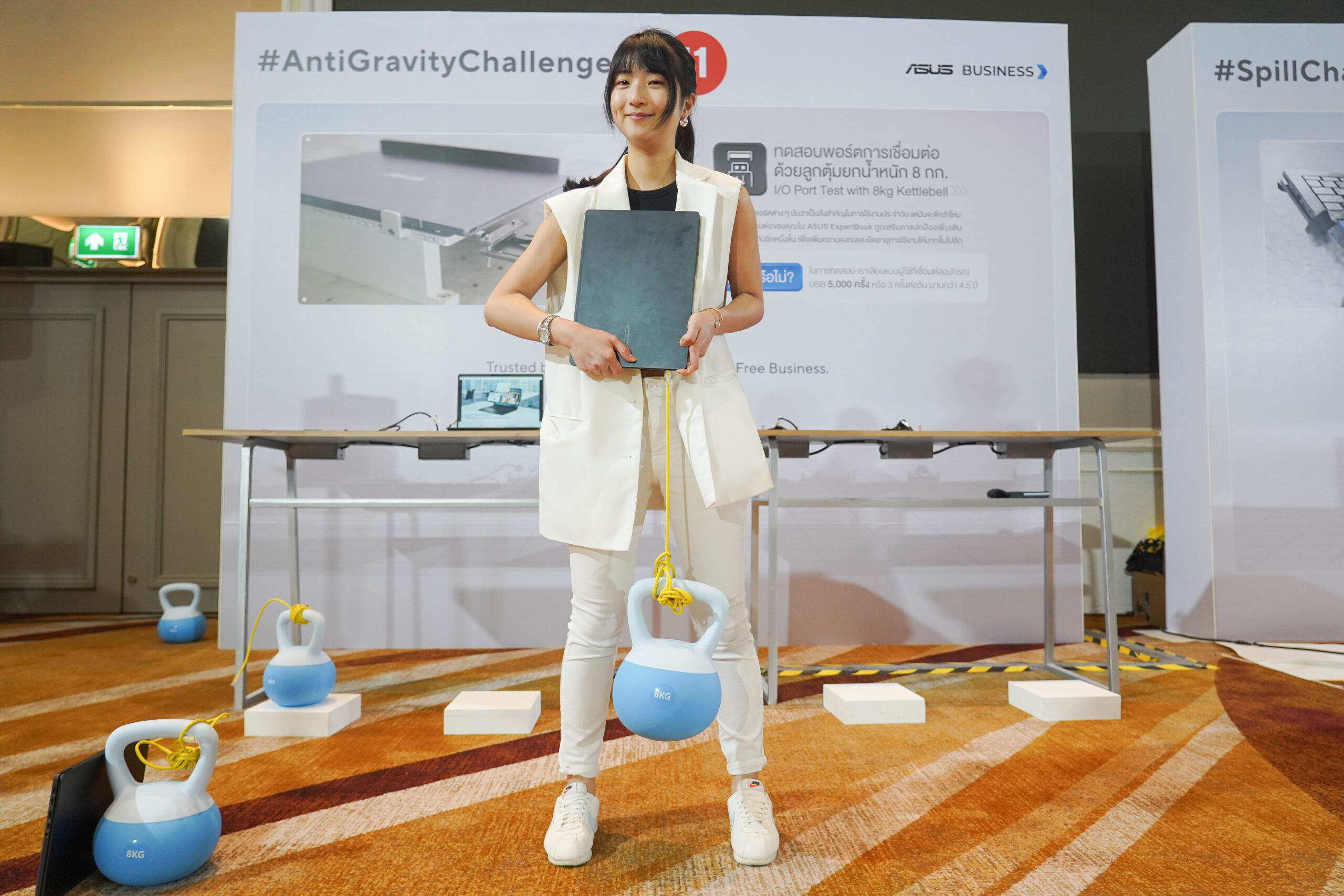 และเพื่อเป็นการันตีถึงความแข็งแกร่ง ภายในงานยังมีกิจกรรม ‘Expert Challenge’ ที่เปิดโอกาสให้ผู้เข้าร่วมงานได้ทดสอบความแข็งแกร่ง พร้อมสัมผัสมาตรฐานความทนทานของ ASUS Superior Durability Test กับด่านทดสอบมหาโหด ไม่ว่าจะเป็นการทดสอบความแข็งแรงบานพับ ด้วยการยกฝาเครื่อง, การทดสอบแรงกดบนหน้าจอ ด้วยการให้คนขึ้นไปยืนบนตัวเครื่อง และใช้ปากกาสอดเข้าใต้หน้าจอแล้วปิดฝาพับ, การ Drop test ทดสอบการตกจากที่สูงกว่า 120 ซม., การทดสอบแผงคีย์บอร์ดที่สามารถกันน้ำได้มากถึง 405 มล. และการทดสอบความแข็งแรงของพอร์ตเชื่อมต่อ ด้วยลูกตุ้มที่หนักกว่า 8 กก. ซึ่งความทนทานทั้งหมดนี้ให้มาพร้อมตั้งแต่รุ่นเริ่มต้นเลยทีเดียว