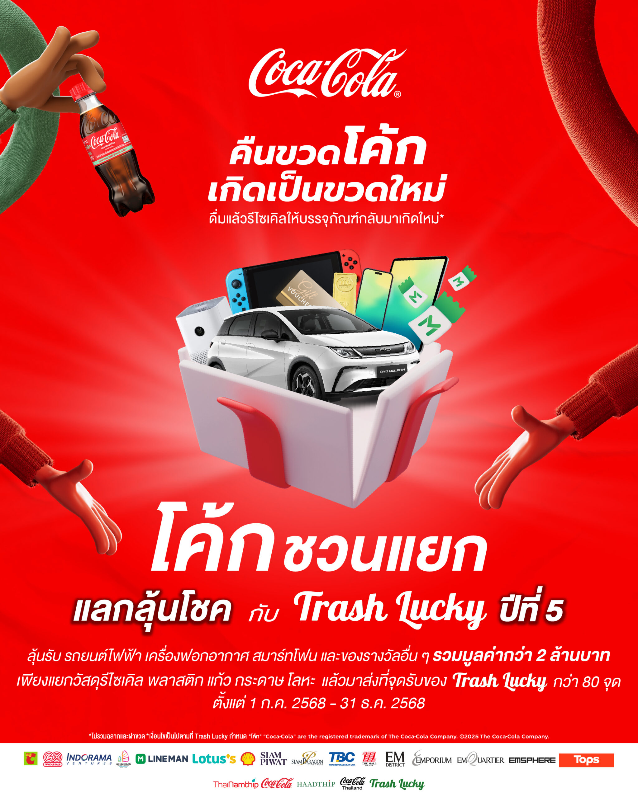 เหตุผลสำคัญที่ทำให้โครงการ “โค้ก” ชวนแยก แลกลุ้นโชค กับ Trash Lucky ประสบความสำเร็จตลอดหลายปีที่ผ่านมา คือการร่วมมือกับหลากหลายพันธมิตรในการตั้งจุดรับวัสดุรีไซเคิลกว่า 80 จุด พร้อมกับให้ความรู้เกี่ยวกับการแยกขยะตั้งแต่ต้นทาง กระตุ้นให้เปลี่ยนพฤติกรรมการแยกขยะ เพื่อนำเข้าสู่กระบวนการรีไซเคิลที่เหมาะสม พร้อมทั้งสร้างแรงจูงใจให้เข้าร่วมโครงการ ด้วยการมอบโชคใหญ่เป็นของรางวัลมากมาย แถมในปีที่ 5 นี้ ยังเน้นดึงดูดให้กลุ่ม Gen Z ที่กำลังสนใจประเด็นความยั่งยืนมาลงมือรีไซเคิลผ่านการจัดกิจกรรมโรดโชว์และเวิร์กช็อปให้ความรู้เกี่ยวกับการรีไซเคิลในหลากหลายมหาวิทยาลัย แถมยังมีการเพิ่มของรางวัลโดนใจ Gen Z มากขึ้น ทั้งแกดเจ็ตต่างๆ และทองคำ รวมถึงผู้เข้าร่วมรีไซเคิลจะได้รับทันที โค้ดส่วนลด LINE MAN Food 30% มูลค่าสูงสุด 100 บาท