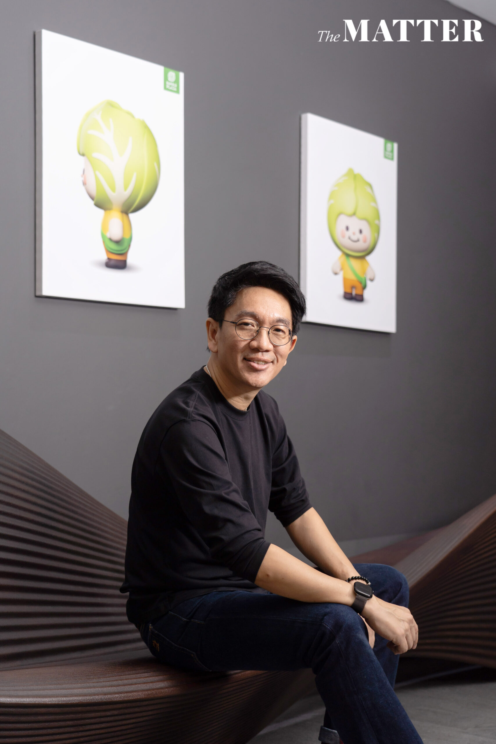 พอมาถึงคอลเลกชันที่ 2 เหมือนเป็นอีกก้าวหนึ่ง เพราะจริงๆ แล้วพี่ GON ไม่ได้มีแค่ตัวเดียว เราค่อยๆ สร้างเพื่อนให้เขามาตลอด อย่าง ‘คามะจัง’ ที่อยู่กับเรามา 10 ปี คือเป็นลูกชิ้นปลาคามาโมโกะ เราก็ใส่รอยยิ้มให้จนกลายเป็นคามะจังและทำหน้าที่เป็นตัวแทน CSR ของบาร์บีคิวพลาซ่า คำเดียวที่เขาพูดได้คือ “ให้” ซึ่งสื่อถึงแนวคิดการแบ่งปัน ต่อมาก็มีเพื่อนใหม่อย่าง ‘น้องกะหล่ำ’ ที่เกิดขึ้นเมื่อปีที่แล้ว เป็นตัวแทนของการรักษ์โลก ที่เชื่อว่าการกระทำเล็กๆ เปลี่ยนโลกให้ยั่งยืนได้ เพราะกะหล่ำปลีเป็นทั้งวัตถุดิบหลักและสัญลักษณ์ที่อยากชวนคนมาดูแลโลกไปด้วยกัน เมื่อพี่ GON มีเพื่อนแล้ว เราก็เลยอยากเอาเพื่อนๆ ของเขามาร่วมอยู่ในคอลเลกชันที่ 2 ด้วย เพื่อเล่าอีกมุมหนึ่งของเรื่องราวที่ต่อยอดจากคอลเลกชันแรกที่มีเรื่องราวอยู่ในทุกตัว อย่างกระทะเองก็อยู่กับบาร์บีคิวพลาซ่ามา 38 ปี วันนี้พี่ GON ก็เลยหยิบกระทะมาทำเป็นท่ายกน้ำหนัก หรือเบคอนที่เป็นเมนูโปรดของใครหลายคน เราก็เล่าเป็นภาพห่มผ้า อบอุ่นเหมือนตอนนอน ทุกอย่างมีเรื่องราวของมันหมด เพียงแต่ครั้งนี้เราขยับจากการเล่าเรื่องที่รายล้อมพี่ GON คนเดียว มาเป็นเรื่องราวของเพื่อนๆ รอบตัวเขาด้วย