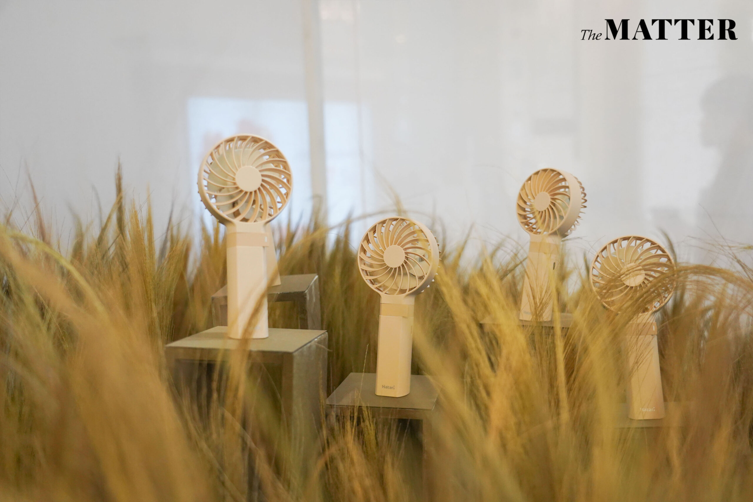 ความหมายของคำว่า ‘โชว์รูม’ สามารถตีความได้ว่าเป็นสถานที่สำหรับแสดงสินค้าต่างๆ เช่น โชว์รูมรถก็จะมีรถแสดงอยู่ ถ้าเป็นเปรียบเปรยไปในทางของฮาตาริ ก็จะเป็นพัดลมรุ่นนี้ ความแรงรอบต่อนาทีเป็นเท่าไร กำลังไฟฟ้าเท่าไร ขนาดใบพัดเท่าไหร่ หรือคุณสมบัติอื่นๆ แต่ข้อมูลเหล่านี้ไม่ได้เกี่ยวข้องกับออกแบบผลิตภัณฑ์โดยตรง เช่นเดียวกัน หากผู้บริโภคต้องการดูพัดลมของฮาตาริ ก็สามารถไปดูที่ห้างสรรพสินค้า หรือร้านค้าจัดจำหน่ายทั่วไป นิทรรศการนี้จึงเป็นมากกว่าการจัดแสดงสินค้า แต่เป็นพื้นที่ให้คุณ “สำรวจ” ความรู้สึกที่มีต่อลม ว่ามันสามารถสร้างความสบาย เติมเต็มบรรยากาศ และเปลี่ยนแปลงประสบการณ์ในชีวิตประจำวันของคุณได้อย่างไร จริงๆ แล้ว มันเกี่ยวข้องกับหลักความเชื่อ ที่เกิดขึ้นจากความตั้งใจที่จะสร้างผลิตภัณฑ์ที่ดีและตอบโจทย์ลูกค้าได้ ทำให้ประสบการณ์การใช้ของเขาดีขึ้นด้วย รวมถึงทำให้ชีวิตของเขาสะดวกสบายขึ้น เลยกลายมาเป็นคอนเซปต์ของเราที่ไม่ได้ต้องการสร้างแค่โชว์รูม แต่เราต้องการให้มีการสำรวจเข้าไปในอารมณ์และความรู้สึกที่มีต่อลม