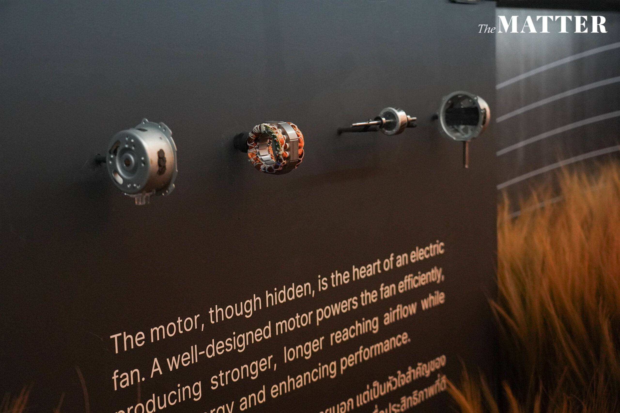 นิทรรศการครั้งนี้มีชื่อว่า 500 Cubic Meters of Wind: The Art and Power of Design ซึ่งเริ่มต้นจากผลตอบรับที่ดีครั้งก่อน ที่เราได้เล่าเรื่องราวของการเดินทางของแบรนด์ ว่าเราได้สร้างดีไซน์ดีเอ็นเอผ่านการออกแบบผลิตภัณฑ์ แล้วนำมาประยุกต์กับแบรนด์ของเราอย่างไร เป้าหมายของนิทรรศการในครั้งนี้ คือการทำให้นิทรรศการไม่ใช่เพียงแค่การจัดแสดงผลิตภัณฑ์แต่เป็นการผสมผสานระหว่างความเป็นนิทรรศการ การออกแบบ และศิลปะ โดยยังคงสามารถจัดแสดงผลิตภัณฑ์ได้ด้วย แนวคิดใหญ่นี้เราตีความออกมาเป็นการสร้างห้องลม เพื่อทำให้สิ่งที่จับต้องไม่ได้อย่างลม กลายเป็นสิ่งที่จับต้องได้โดยการใช้ประสาทสัมผัสทั้ง 5 รูป รส กลิ่น เสียง และสัมผัส เราจะแสดงให้เห็นว่าลมสามารถสร้างรูป สร้างรส สร้างเสียง และสร้างสัมผัสที่กระทบกับกายเราได้อย่างไร รวมถึงการกระทบกับสภาพแวดล้อมที่เราสร้างขึ้นได้อย่างไร เป้าหมายของเราคือการยกระดับไม่ใช่แค่ด้านการดีไซน์เพียงอย่างเดียว แต่ต่อยอดไปยังประสบการณ์ที่ผู้บริโภคจะได้รับจากการมีปฏิสัมพันธ์กับผลิตภัณฑ์ของเรา
