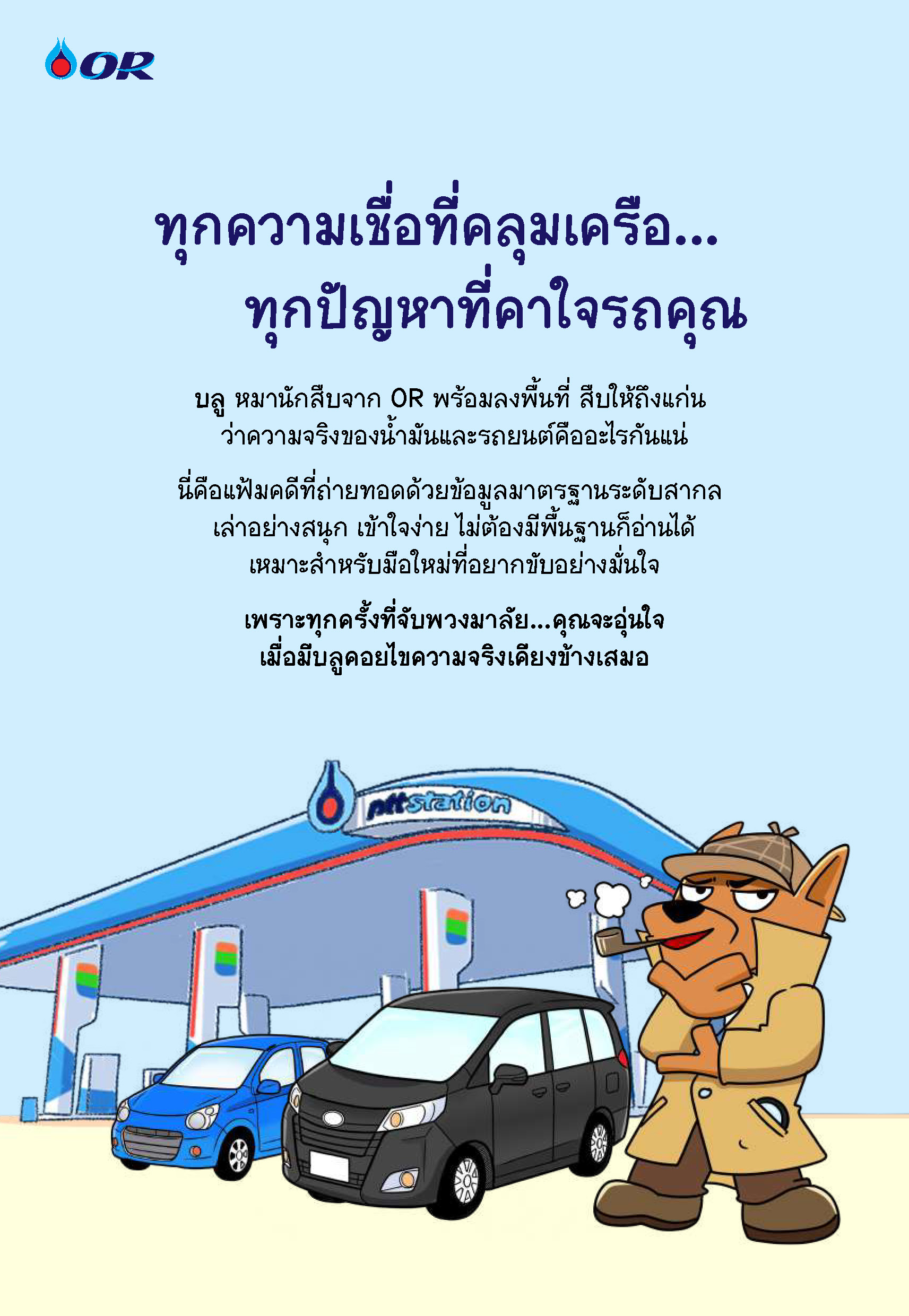ดาวน์โหลด ‘บลู Files: แฟ้มลับ หมาเฝ้าปั๊ม’ พกติดมือถือไว้ เหมือนมีช่างเทคนิคส่วนตัวและกูรูน้ำมันนั่งไปด้วยทุกที่ โหลดฟรี ไม่เสียค่าใช้จ่าย คลิกที่นี่ https://www.pttor.com/publications/orxkhrebook-bluefiles