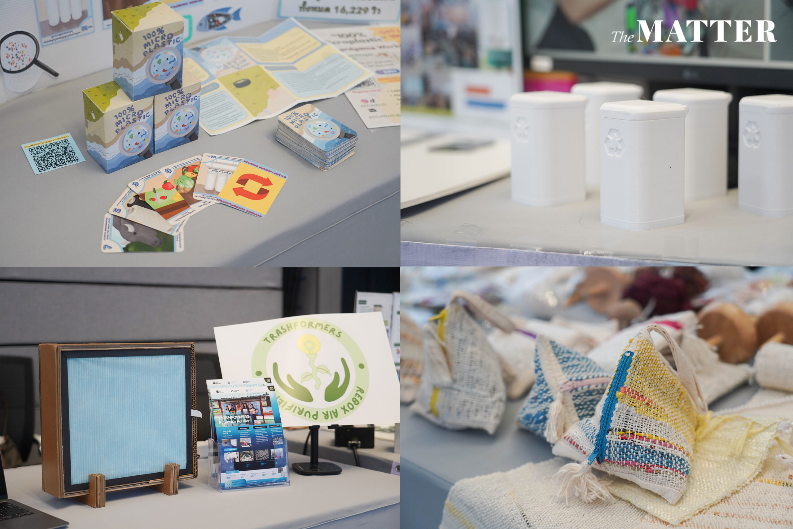 หากย้อนกลับไปตั้งแต่เริ่มต้นรับสมัครโครงการ หนึ่งในตัวชี้วัดผลสำเร็จของโครงการนำเสนอเข้ามา คือการมีส่วนร่วมของกลุ่มเป้าหมายทั้งออนไลน์และออนไซต์ ซึ่งเป็นสิ่งที่พิสูจน์ได้ถึงผลสำเร็จของโครงการที่นำเสนอ โดยจากผลงานของน้องๆ ทั้ง 10 ทีม ประกอบไปด้วยโปรเจกต์สุดสร้างสรรค์ไม่ว่าจะเป็น โครงการจัดการ food waste ภายในโรงเรียนและมหาวิทยาลัย, เครื่องฟอกอากาศจากวัสดุอิเล็กทรอนิกส์, ทรายแมวจากผลผลิตทางการเกษตร, ผ้าทอจากวัสดุรีไซเคิล, การ upcycling ใยพลาสติกกับเศษผ้าทอให้เป็นกระเป๋าใส่ของ และบอร์ดเกมให้ความรู้เรื่องไมโครพลาสติก ได้สร้าง impact ออกมาเป็นตัวเลขที่น่าประทับใจดังต่อไปนี้ มีการเข้าถึงในรูปแบบออนไลน์ ผ่านโซเชียลมีเดียต่างๆ จากกิจกรรมในโปรเจกต์ทั้งหมดกว่า 117,188 ครั้ง มีจำนวนการเข้าร่วมกิจกรรมออนไซต์ทั้งหมดกว่า 1,662 คน เรียกว่าเป็นตัวเลขที่สูงอย่างมากทีเดียว นอกจากตัวเลขที่ยืนยันถึงความสำเร็จแล้ว คือการสร้างความเปลี่ยนแปลง ผ่านการลงมือทำจริง ทั้งการแยกขยะ การลดใช้วัสดุสิ้นเปลือง การ upcycling เพิ่มมูลค่าให้วัสดุเหลือใช้ และที่สำคัญคือการสร้างแนวคิดในการรักษาสิ่งแวดล้อม เปลี่ยนเรื่องไกลตัวให้กลายเป็นสิ่งใกล้ตัว ให้กับผู้คนทั้งในชุมชน โรงเรียน และมหาวิทยาลัย ลองไปทำความรู้จักและสำรวจเบื้องหลังการทำงานของ 2 ทีม 2 โปรเจกต์ที่เปลี่ยนโลกได้สำเร็จ