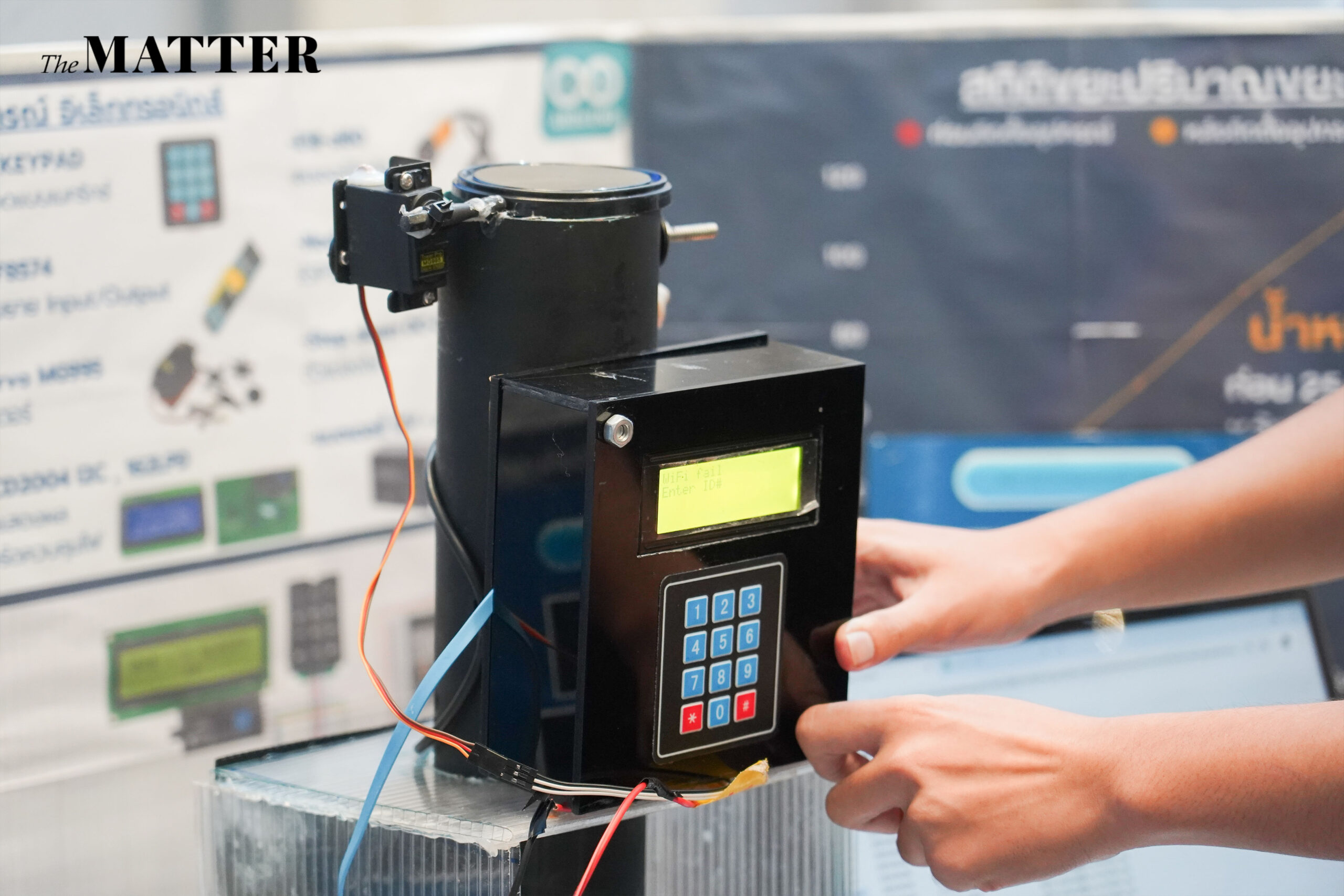 “จุดเริ่มต้นมาจากการที่โรงเรียนของเรามีขยะเกลื่อนกลาด แล้วโครงการธนาคารขยะที่มีอยู่ก็ไม่ค่อยได้รับความสนใจ เราเลยคิดว่าทำไมมันถึงเป็นแบบนั้น” ตัวแทนจากทีม 6p จากโรงเรียนปลาปากวิทยา จังหวัดนครพนม เล่าถึงจุดเริ่มต้นของโปรเจกต์สิ่งแวดล้อม “เด็กหลายคนไม่ค่อยทิ้งขยะลงถัง เพราะคิดว่าเดี๋ยวภารโรงก็มากวาดอยู่แล้ว” หนึ่งในสมาชิกอธิบายปัญหาเชิงพฤติกรรม จากจุดตั้งต้นนี้ทำให้เกิด ‘เครื่องบันทึกการแยกขยะอัจฉริยะ’ อุปกรณ์สุดล้ำที่มีช่องสำหรับทิ้งขวดพลาสติก โดยมีเซ็นเซอร์ตรวจจับจำนวนขวดที่ผูกกับระบบคะแนนพฤติกรรมของโรงเรียน ใครทิ้งขวดลงเครื่องก็จะได้คะแนนบวกสะสม และเก็บข้อมูลลงฐานระบบออนไลน์ เพื่อเปลี่ยนพฤติกรรมของนักเรียนให้เห็นว่าการทิ้งขยะถูกที่ ไม่ใช่เรื่องไกลตัว กลายเป็นแรงจูงใจให้เพื่อนๆ อยากเข้ามามีส่วนร่วม