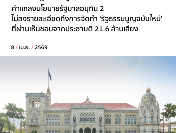 ไม่มีแก้รัฐธรรมนูญ ในแถลงนโยบาย? คำแถลงนโยบายรัฐบาลอนุทิน 2 ไม่ลงรายละเอียดถึงการจัดทำ ‘รัฐธรรมนูญฉบับใหม่’ ที่ผ่านเห็นชอบจากประชามติ 21.6 ล้านเสียง