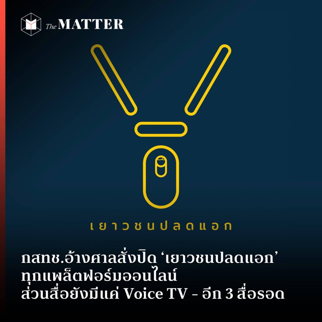 ภุชพงค์ โนดไธสง รองปลัดกระทรวงดิจิทัลเพื่อเศรษฐกิจและสังคม เปิดเผยว่า ล่าสุดศาลมีคำสั่งปิดกั้นทุกแพล็ตฟอร์มออนไลน์ของ ‘เยาวชนปลดแอก’ แล้ว ตามคำร้องของกระทรวงดิจิทัลฯ ที่อ้างว่าทำผิด พ.ร.ก.ฉุกเฉินและ พ.ร.บ.คอมพิวเตอร์ หลังจากปิดกั้น Voice TV ไปแล้วก่อนหน้านี้