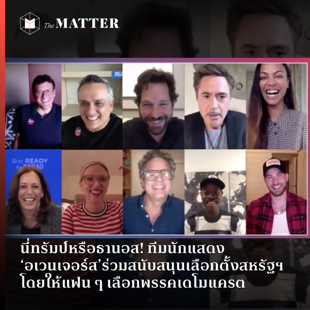 เหล่านักแสดงอเวนเจอร์ส ได้แก่ มาร์ค รัฟฟาโล (Mark Ruffalo) โซอี้ ซัลดาน่า (Zoe Saldana) สการ์เลตต์ โจแฮนส์สัน (Scarlett Johansson) พอล รัด (Paul Rudd) คริส อีแวนส์ (Chris Evans) ดอน ชีเดล (Don Cheadle) และโรเบิร์ต ดาวนีย์ จูเนียร์ (Robert Downey, Jr.) รวมไปถึงสองพี่น้องรุสโซผู้กำกับ ได้ปรากฏตัวผ่านกิจกรรมระดมทุนทางออนไลน์เมื่อวันอังคารที่ผ่านมาพร้อมกับคามาลา แฮร์ริส (Kamala Harris) ผู้ท้าชิงตำแหน่งรองประธานาธิบดีสหรัฐฯ พรรคเดโมแครต โดยแฮร์ริสได้กล่าวไว้อาลัยถึง แชดวิก บอสแมน (Chadwick Boseman) อดีตนักแสดงนำจากเรื่องแบล็ค แพนเธอร์ ผู้ล่วงลับ ผู้ที่เธอเรียกเขาว่า ‘เพื่อนรัก’