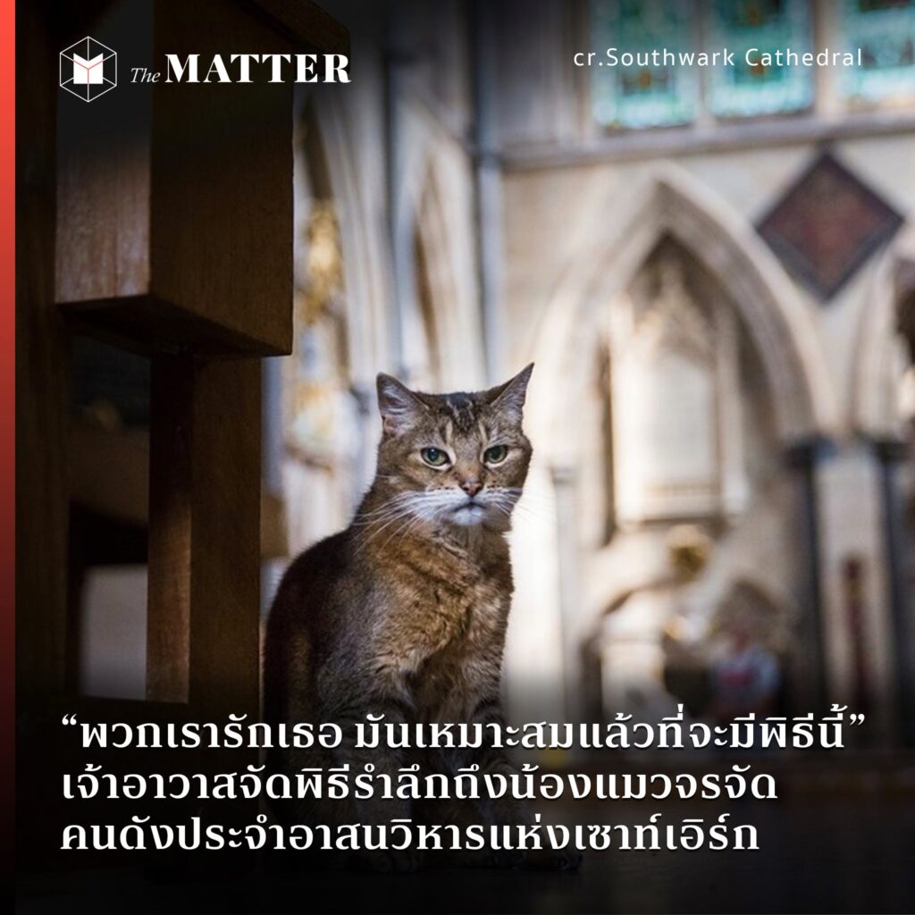 คุณเคยสูญเสียสัตว์เลี้ยงตัวโปรดของคุณหรือเปล่า? มันเป็นเรื่องที่แสนเศร้าเมื่อความตายพรากคนที่เรารักจากไป ไม่ต่างอะไรกันกับสัตว์เลี้ยงตัวโปรดของเรา แต่สำหรับสัตว์จรจัดที่เสียชีวิตล่ะ? เรื่องราวสุดแสนอบอุ่นหัวใจนี้เกิดขึ้นที่อาสนวิหารแห่งหนึ่งในอังกฤษที่เพิ่งจัดพิธีรำลึกถึงเจ้าแมวน้อยจรจัดขาประจำของอาสนวิหารในระหว่างพิธีขอบคุณพระเจ้า