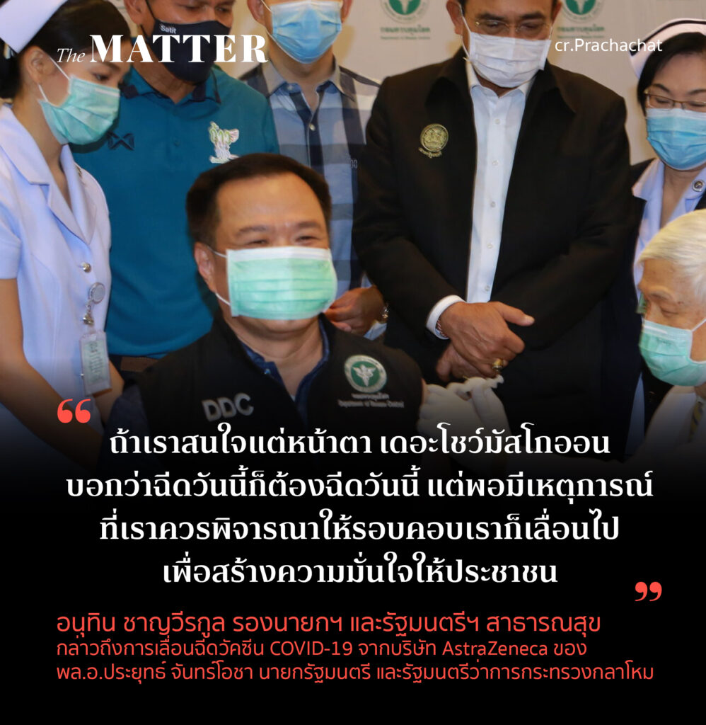 “ถ้าเราสนใจแต่หน้าตา เดอะโชว์มัสโกออนบอกว่าฉีดวันนี้ก็ต้องฉีดวันนี้ แต่พอมีเหตุการณ์ที่เราควรพิจารณาให้รอบคอบเราก็เลื่อนไป เพื่อสร้างความมั่นใจให้ประชาชน”