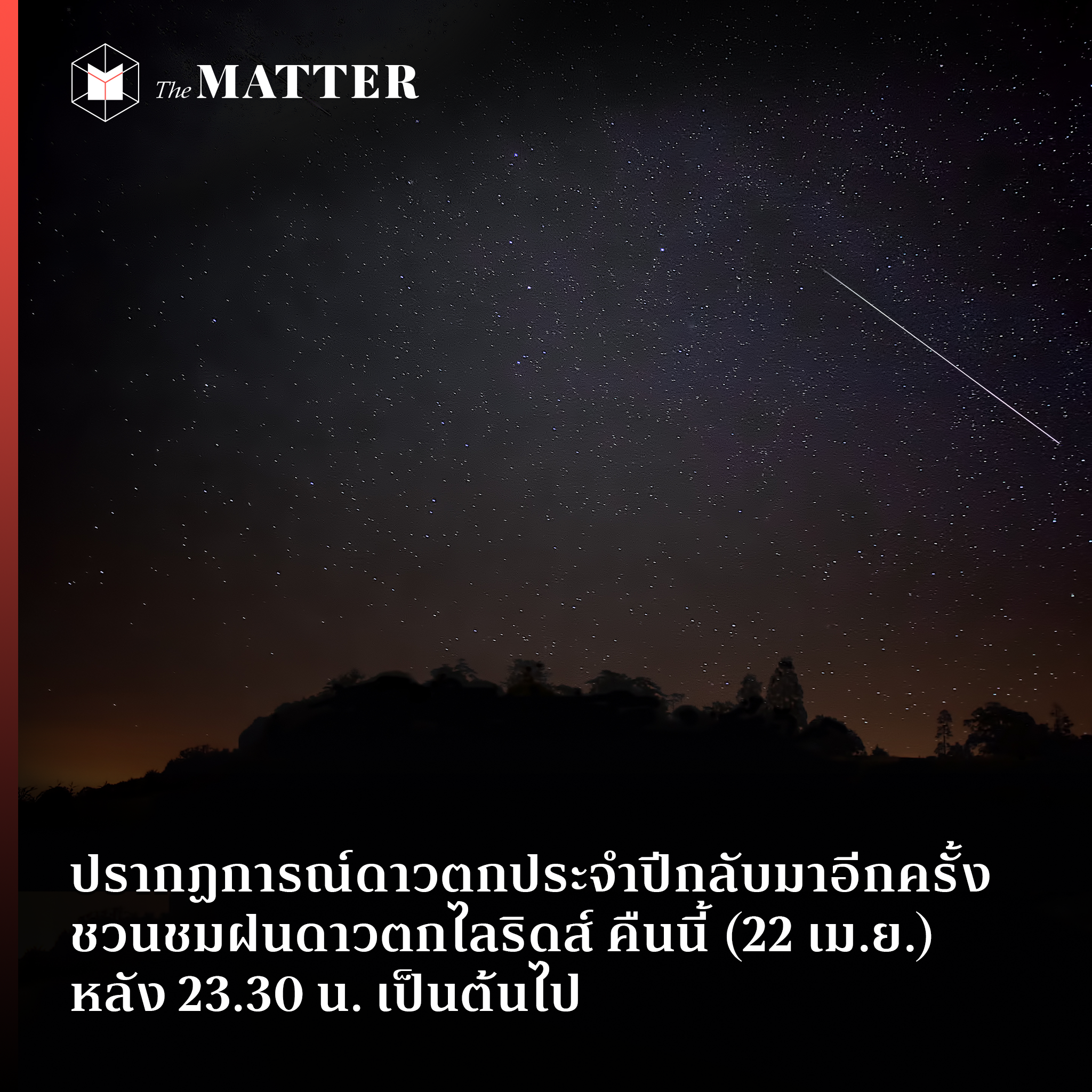 ปิดโทรทัศน์ วางมือถือ ปิดไฟ แล้วไปดูดาวตกกันไหม ? สถาบันวิจัยดาราศาสตร์แห่งชาติ เปิดเผยว่าคืนนี้ (22 เมษายน) ตั้งแต่เวลา 23.30 น. เป็นต้นไป จะมีปรากฏการณ์ฝนดาวตกไลริดส์ และที่สำคัญสามารถสังเกตเห็นได้จากทุกพื้นที่ทั่วประเทศไทย ไม่จำเป็นต้องไปที่จุดชมดาว