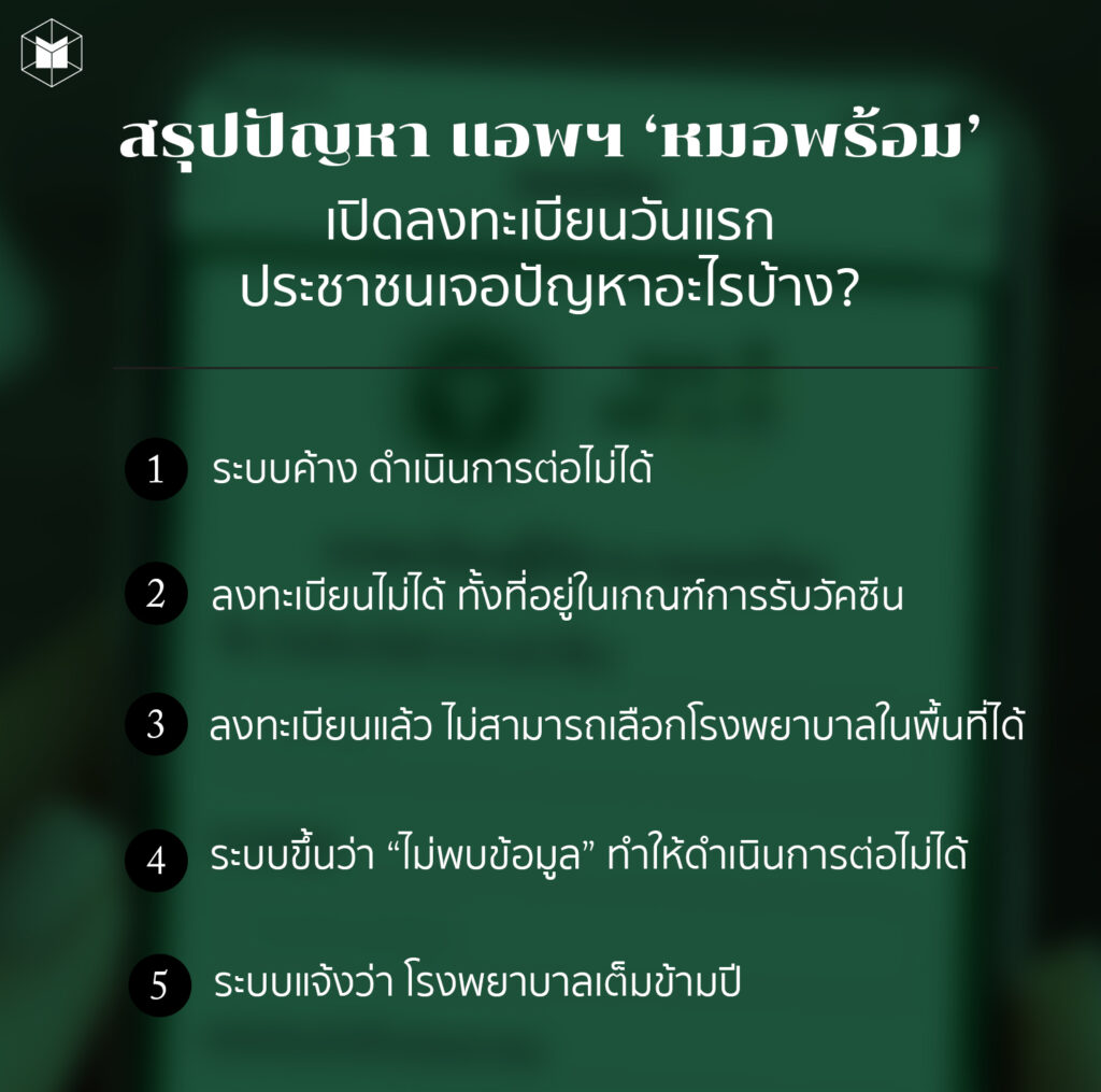 สรุปปัญหาลงทะเบียนรับวัคซีนผ่านแอพฯ ‘หมอพร้อม’ วันแรก ประชาชนเจอปัญหาระบบค้าง ลงทะเบียนไม่ได้ คิวนานข้ามปี
