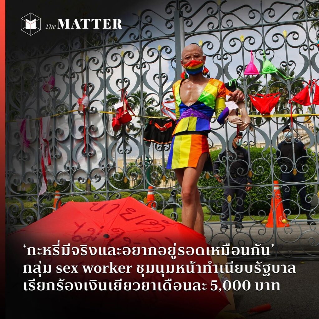 หนึ่งในผู้ร่วมชุมนุมให้สัมภาษณ์กับ The MATTER เธอเล่าว่านโยบายสั่งปิดสถานบริการไม่ใช่เรื่องผิด แต่ต้องไม่ลืมที่จะเยียวยาคนทำงานด้วย เพราะทุกวันนี้ไม่มีรายได้เข้ามาสักบาท “เงินเยียวยาที่เขาให้ไม่ใช่เงินสด เราจะเอาเงินให้ลูกไปโรงเรียน 5-10 บาท หรือจ่ายค่าห้อง มันไม่ได้”