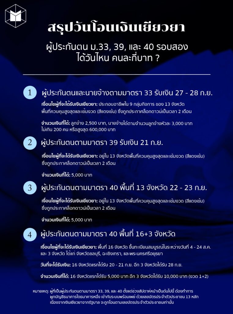 วันที่จะได้รับเงินเยียวยา: วันที่ 27 – 28 กันยายน พ.ศ.2564