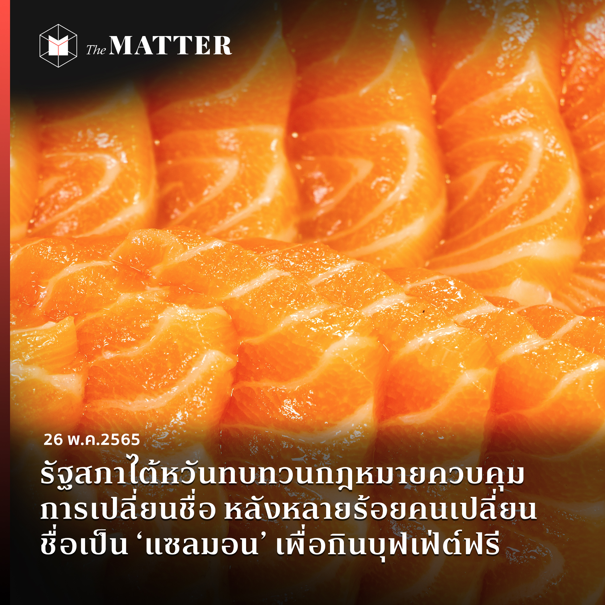 บางครั้งต้นตอของการออกกฎหมายก็อาจมาจาก ‘ปลาส้ม’ หรือแซลมอน… รัฐสภาไต้หวันกำลังถกเถียงกันถึงการแก้กฎหมายที่ห้ามไม่ให้บุคคลเปลี่ยนชื่อเกิน 3 ครั้ง หลังจากระบบราชการของไต้หวันต้องแบกภาระ เพราะมีคนจำนวนมากเปลี่ยนชื่อให้เกี่ยวกับแซลมอน เพื่อกินบุฟเฟ่ต์ฟรี