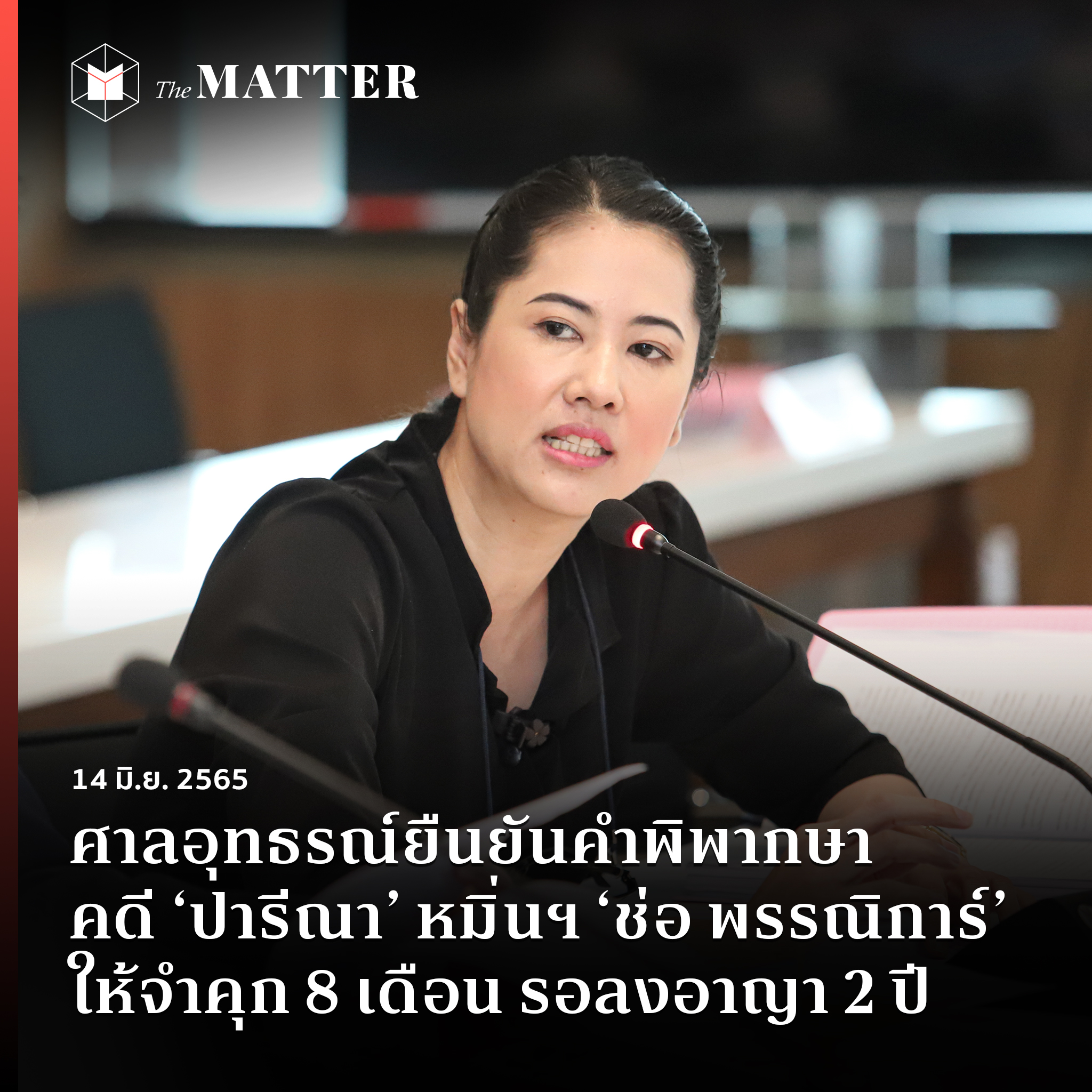 วันนี้ (14 มิ.ย. 2565) ศาลอุทธรณ์มีนัดอ่านคำพิพากษาคดีหมายเลขดำ อ.2043/62 ที่ พรรณิการ์ วานิช โฆษกคณะก้าวหน้า ยื่นฟ้อง ปารีณา ไกรคุปต์ อดีต ส.ส.ราชบุรี พรรคพลังประชารัฐ ฐานหมิ่นประมาทโดยการโฆษณา ตามประมวลกฎหมายอาญา มาตรา 326 และ 328