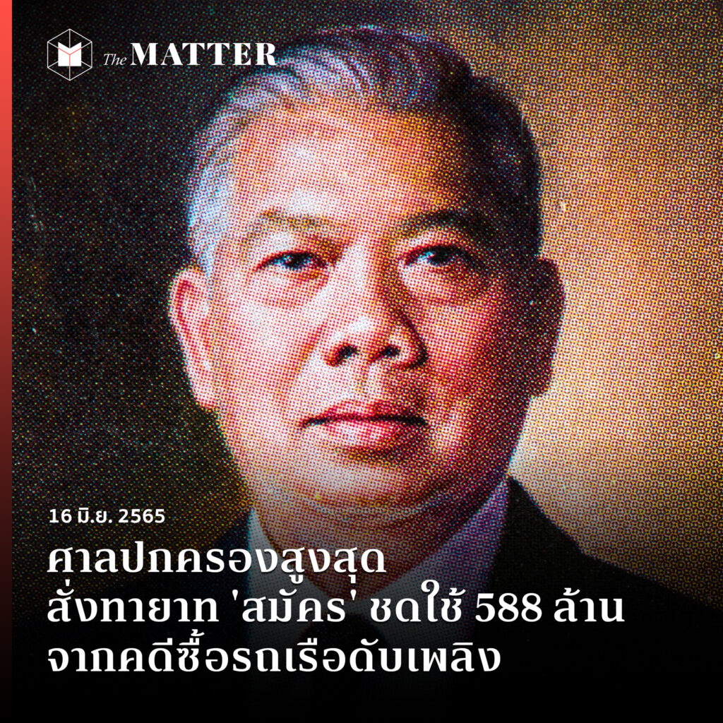 วานนี้ (15 มิ.ย.2565) ศาลปกครองสูงสุดมีคำพิพากษา ในคดีหมายเลขดำที่ อ.628/2557 คดีหมายเลขแดงที่ อ.368/2565 ให้ทายาทของสมัคร สุนทรเวช อดีตนายกรัฐมนตรีและอดีตผู้ว่าฯ กทม. ได้แก่ ภรรยา (คุณหญิงสุรัตน์ สุนทรเวช) และบุตรสาวฝาแฝด (กาญจนากร ไชยสาส์น-กานดาภา มุ่งถิ่น) ชดใช้ค่าสินไหมทดแทน จากคดีจัดซื้อรถและเรือดับเพลิงของ กทม. ในราคาแพงเกินจริง เอื้อประโยชน์ให้กับบริษัทเอกชน ซึ่งเกิดขึ้นสมัยที่สมัครเป็นผู้ว่าฯ กทม. เป็นเงิน 587.85 ล้านบาท รวมดอกเบี้ย แก่ กทม. โดยให้ชำระภายใน 60 วัน นับแต่วันที่คดีถึงที่สุด