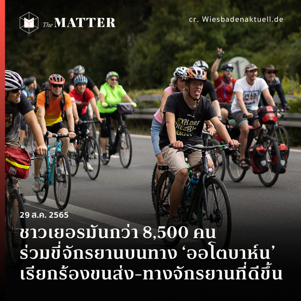 ชาวเยอรมันกว่า 8,500 คนมารวมตัวกัน โดยการนัดหมายของเครือข่ายพลเมืองที่ชื่อ ‘Verkehrswende Hessen’ เพื่อร่วมกิจกรรมปั่นจักรยานบนทางด่วนออโตบาห์น เรียกร้องขนส่งสาธารณะและทางจักรยานที่ดีขึ้นในรัฐเฮสเซิน ทางตอนกลางของเยอรมนี