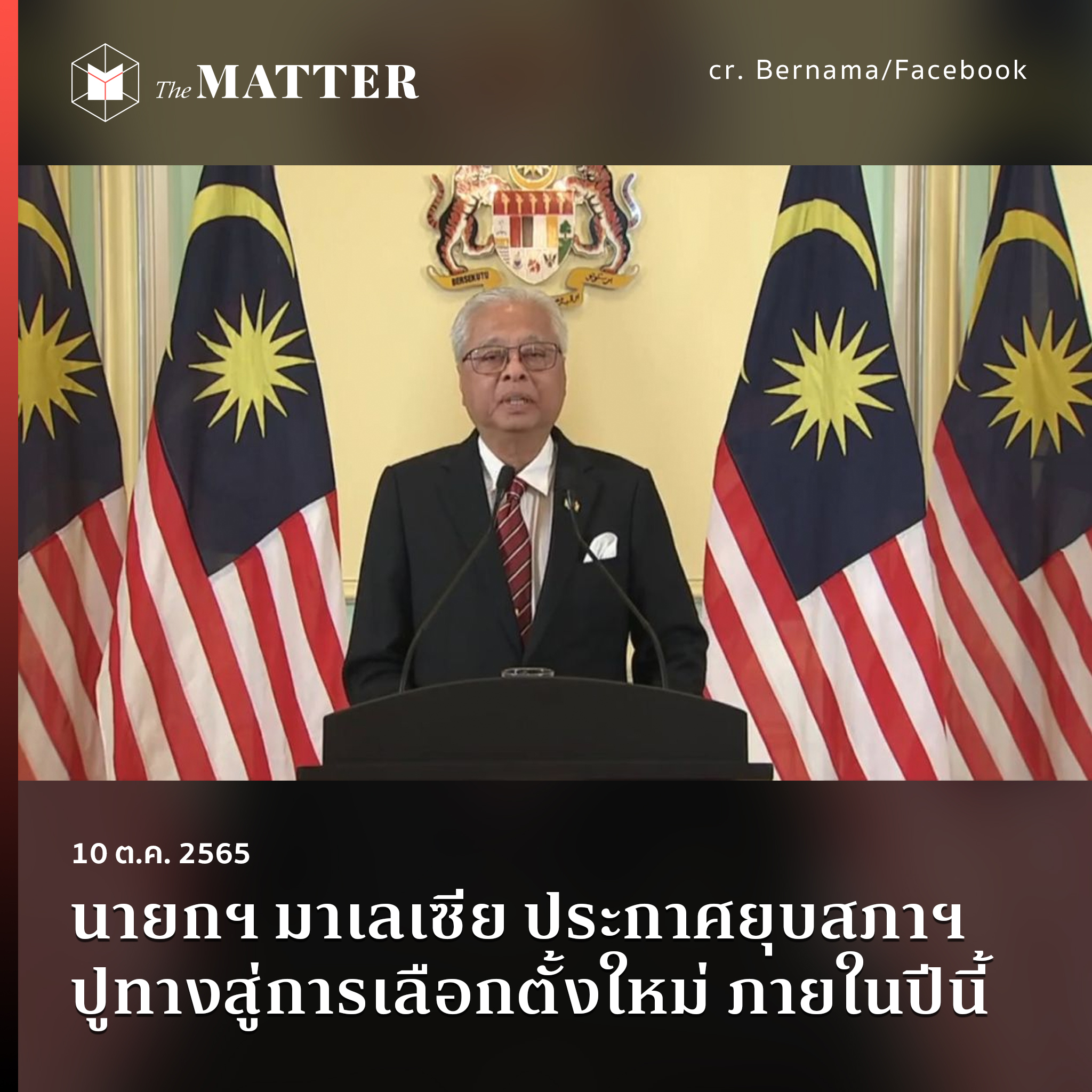 อิซมาอิล ซาบรี ยาคอบ นายกรัฐมนตรีมาเลเซียจากพรรคอัมโน (UMNO) พรรคการเมืองยักษ์ใหญ่ในมาเลเซีย ประกาศยุบสภาฯ ผ่านโทรทัศน์ เมื่อช่วงบ่ายวันนี้ (10 ตุลาคม) ปูทางสู่การเลือกตั้งทั่วไปครั้งใหม่ ที่จะต้องมีขึ้นภายในปีนี้