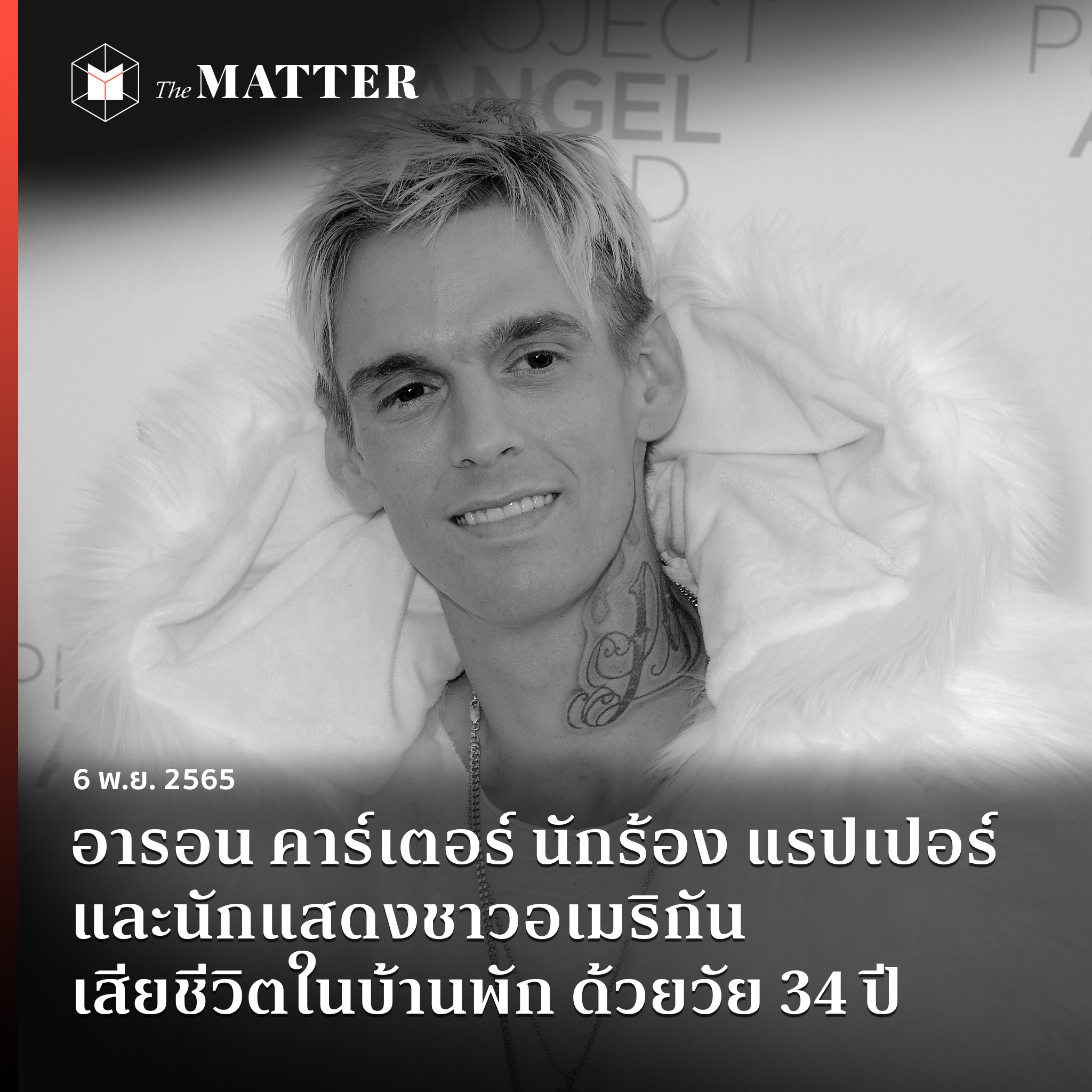 อารอน คาร์เตอร์ (Aaron Carter) นักร้อง แรปเปอร์ และนักแสดง น้องชายของนิค คาร์เตอร์ (Nick Carter) จากวง Backstreet Boys เสียชีวิตในวันที่ 5 พฤศจิกายน (ตามเวลาท้องถิ่น) ด้วยวัย 34 ปี
