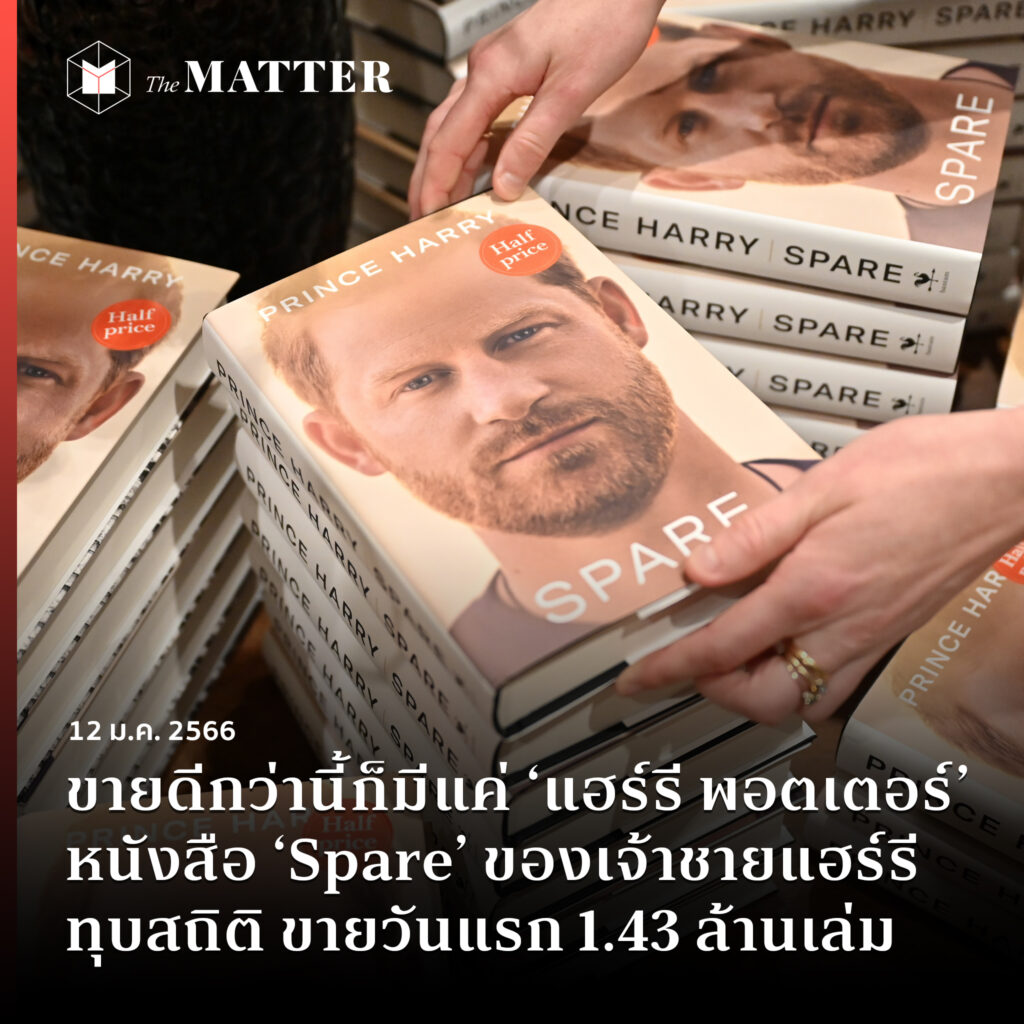 หลังจากวางขายวันแรกไปเมื่อวันอังคารที่ 10 มกราคมที่ผ่านมา สำนักพิมพ์ เพนกวิน แรนดอมเฮาส์ (Penguin Random House) ก็ประกาศว่า หนังสือบันทึกความทรงจำที่ชื่อ ‘Spare’ (ซึ่งแปลว่า ‘ตัวสำรอง’) ของเจ้าชายแฮร์รี ดยุกแห่งซัสเซ็กซ์ มียอดขายทะลุ 1.43 ล้านเล่ม ในทุกฟอร์แมต ในสหรัฐฯ แคนาดา และสหราชอาณาจักร สำหรับวันแรกที่วางขายเพียงวันเดียว
