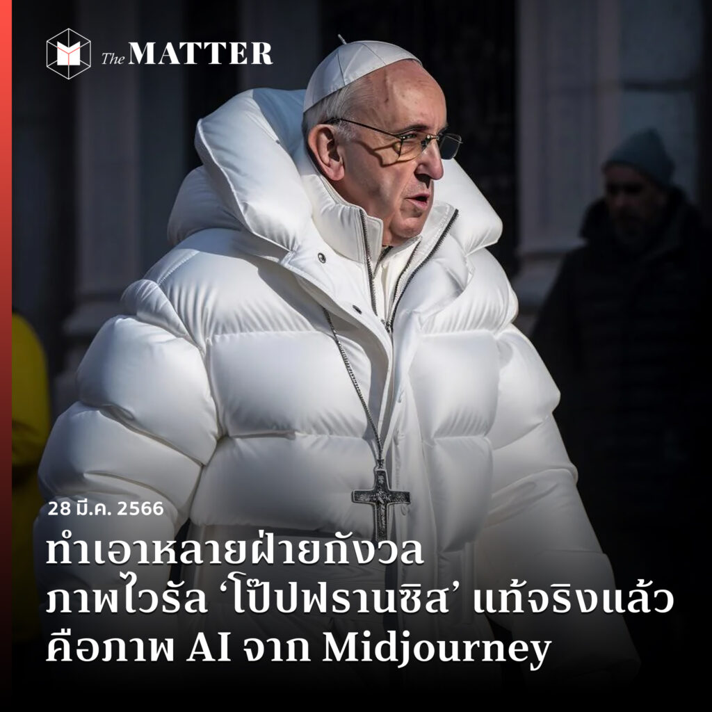 ภาพ ‘โป๊ปฟรานซิส’ (Pope Francis) สวมเสื้อกันหนาวสีขาว คล้ายเสื้อโค้ต Balenciaga ดูเผินๆ คล้ายภาพคนดังสวมเสื้อผ้าไฮแฟชั่นทั่วไป แต่แท้จริงแล้ว ภาพนี้กลับเป็นภาพ AI ที่สร้างโดย Midjourney ที่เสมือนจริงจนทำให้หลายคนหลงเชื่อ – และทำให้ผู้เชี่ยวชาญหลายคนเริ่มเป็นกังวล