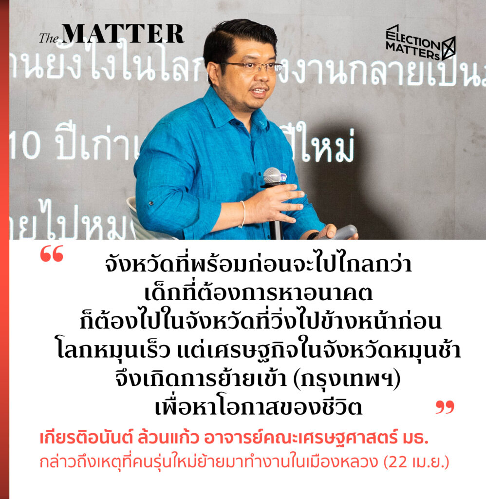 ทั้งนี้ ในอดีตเคยมีความเชื่อว่าเมื่อเกิดการขยายตัวในแต่ละจังหวัด ก็จะเกิดการจ้างงานมากขึ้น แต่ในความเป็นจริงแล้วกลับกัน ซึ่งโรคระบาดเป็นตัวเร่งทำให้โมเดลทางเศรษฐกิจเปลี่ยนไป ธุรกิจจำเป็นต้องลดต้นทุนของแรงงาน ผนวกกับค่าครองชีพพุ่งขึ้นอย่างรวดเร็ว รวมถึงทักษะจากการเรียนก็ไม่สามารถใช้ได้จริงในการทำงาน ท้ายสุดผลลัพธ์จึงแสดงออกมาผ่าน “คนที่จนลง ทั้งที่มีรายได้เพิ่มขึ้น”
