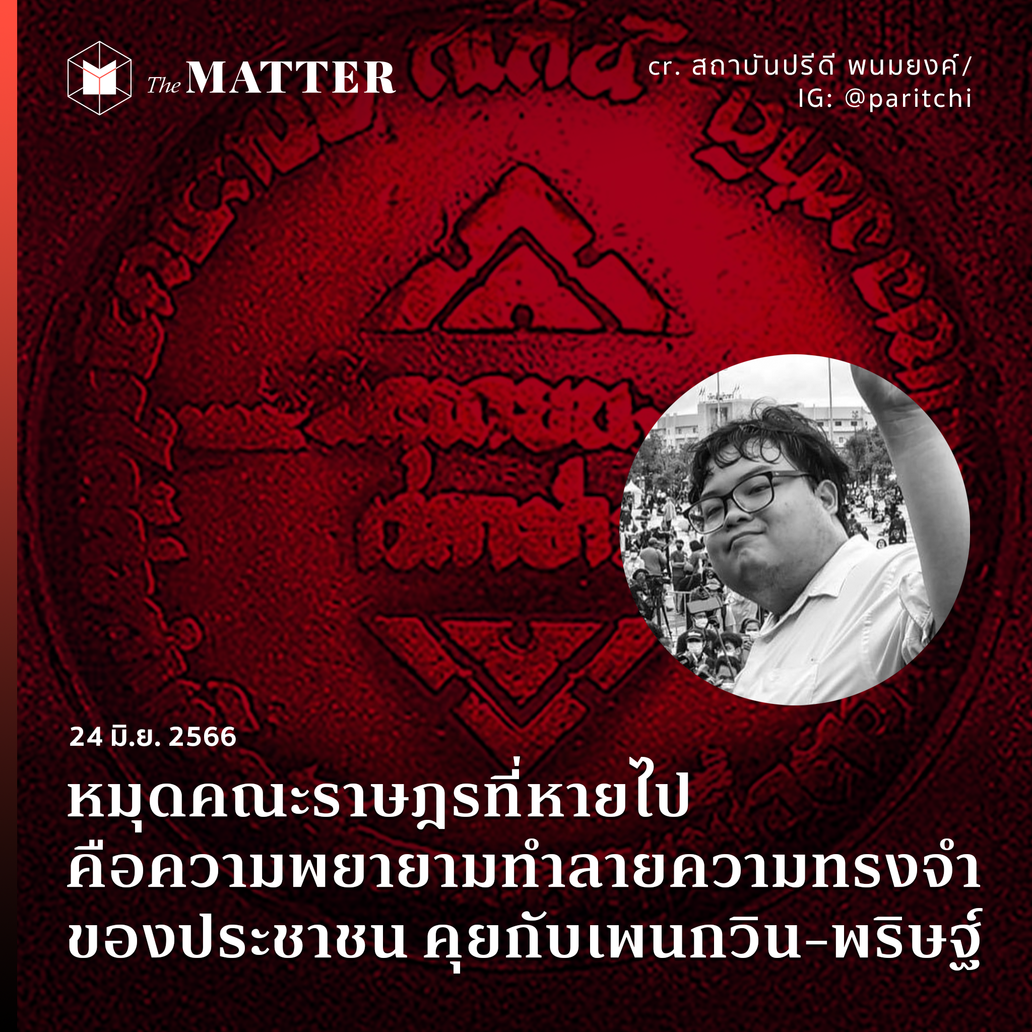 หมุดคณะราษฎรที่หายไปนี้ สะท้อนให้เห็นอะไรบ้าง? The MATTER จึงต่อสายหา เพนกวิน—พริษฐ์ ชิวารักษ์ นักเคลื่อนไหวทางการเมือง เพื่อสอบถามความเห็นแล้วก็ได้สรุปมุมมองของเขาเอาไว้ให้ทุกคนแล้ว