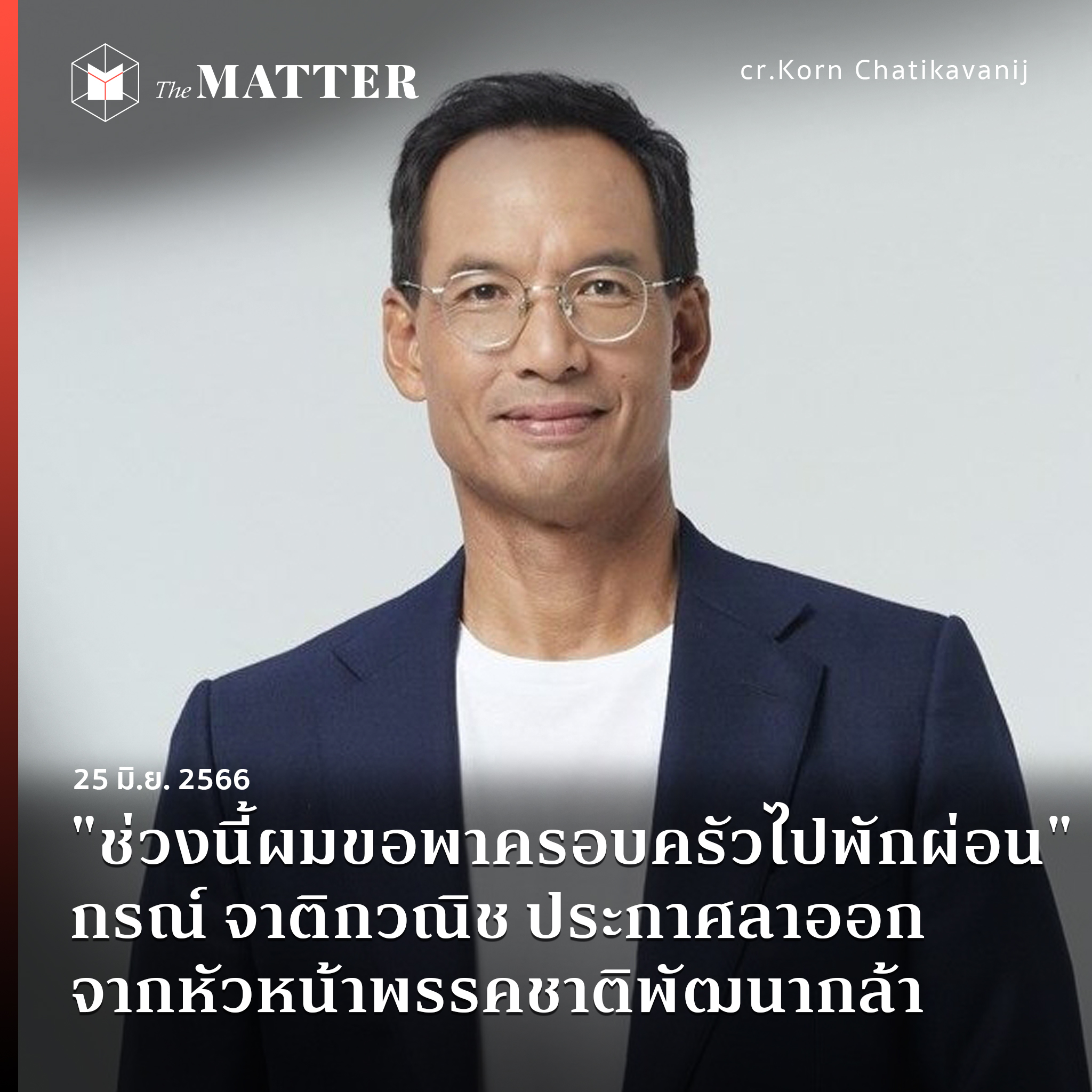 หลังการเลือกตั้งใหญ่สิ้นสุดไป วันนี้ (25 มิถุนายน) กรณ์ จาติกวณิช เป็นหัวหน้าพรรคอีกคนหนึ่งที่ตัดสินใจประกาศลาออก โดยโพสต์ข้อความผ่านเพจเฟสบุ๊กส่วนตัว ‘กรณ์ จาติกวณิช – Korn Chatikavanij’ แจ้งลาออกจากตำแหน่งหัวหน้าพรรคชาติพัฒนากล้า