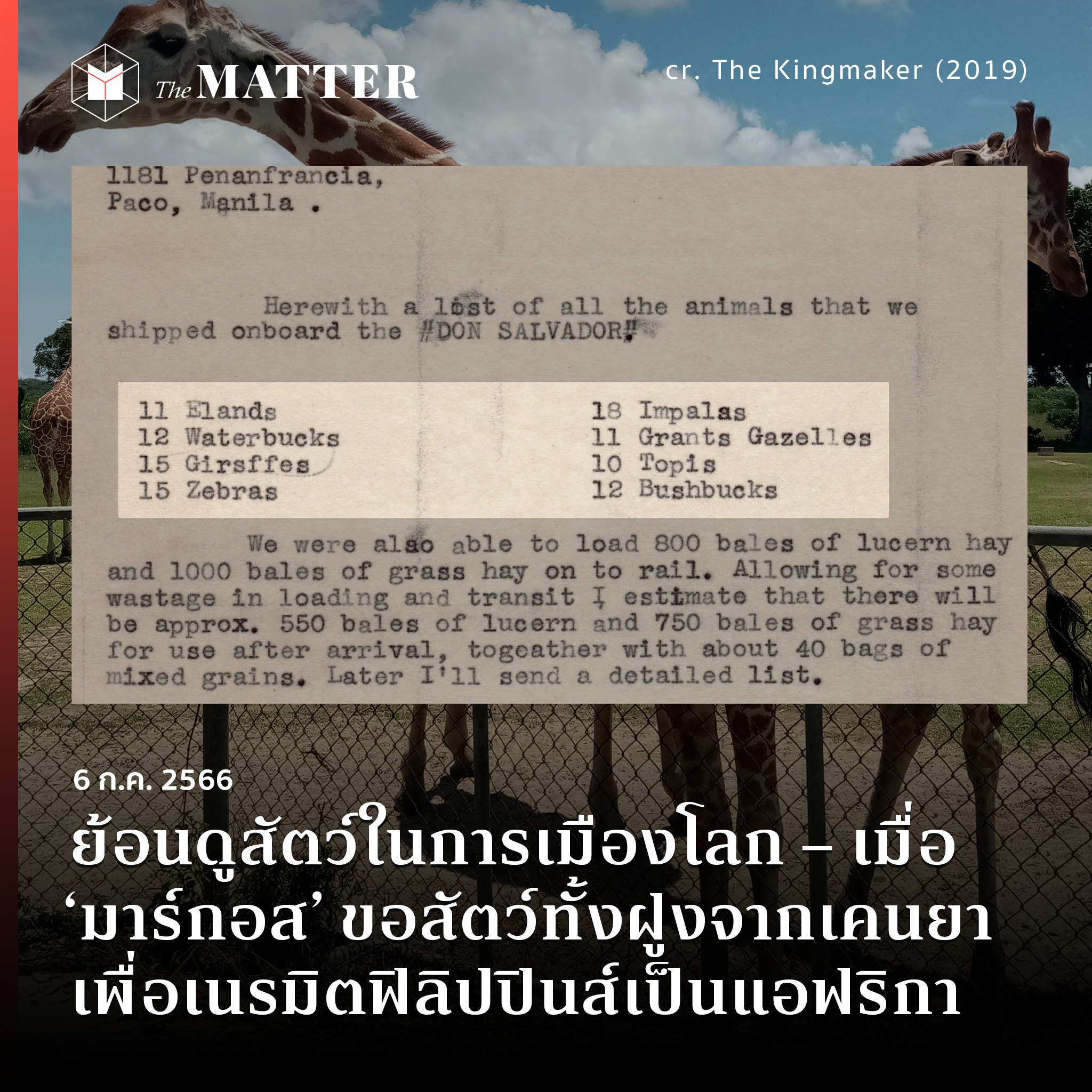 แต่ตัวอย่างหนึ่งที่สุดโต่งที่สุดของสัตว์ในการเมืองโลก ที่ The MATTER นึกถึง และอยากนำมาเล่าให้ฟังกัน คือกรณีของ ‘เฟอร์ดินานด์ มาร์กอส’ (Ferdinand Marcos) อดีตจอมเผด็จการแห่งฟิลิปปินส์ ที่ขอสัตว์ทั้งฝูงมาจากเคนยา เพื่อสร้างซาฟารีบนเกาะ ‘คาลาอุต’ (Calauit Island) จนต้องไล่ชาวบ้านในพื้นที่ออกไปทั้งหมด 254 ครัวเรือน เมื่อปี 1976
