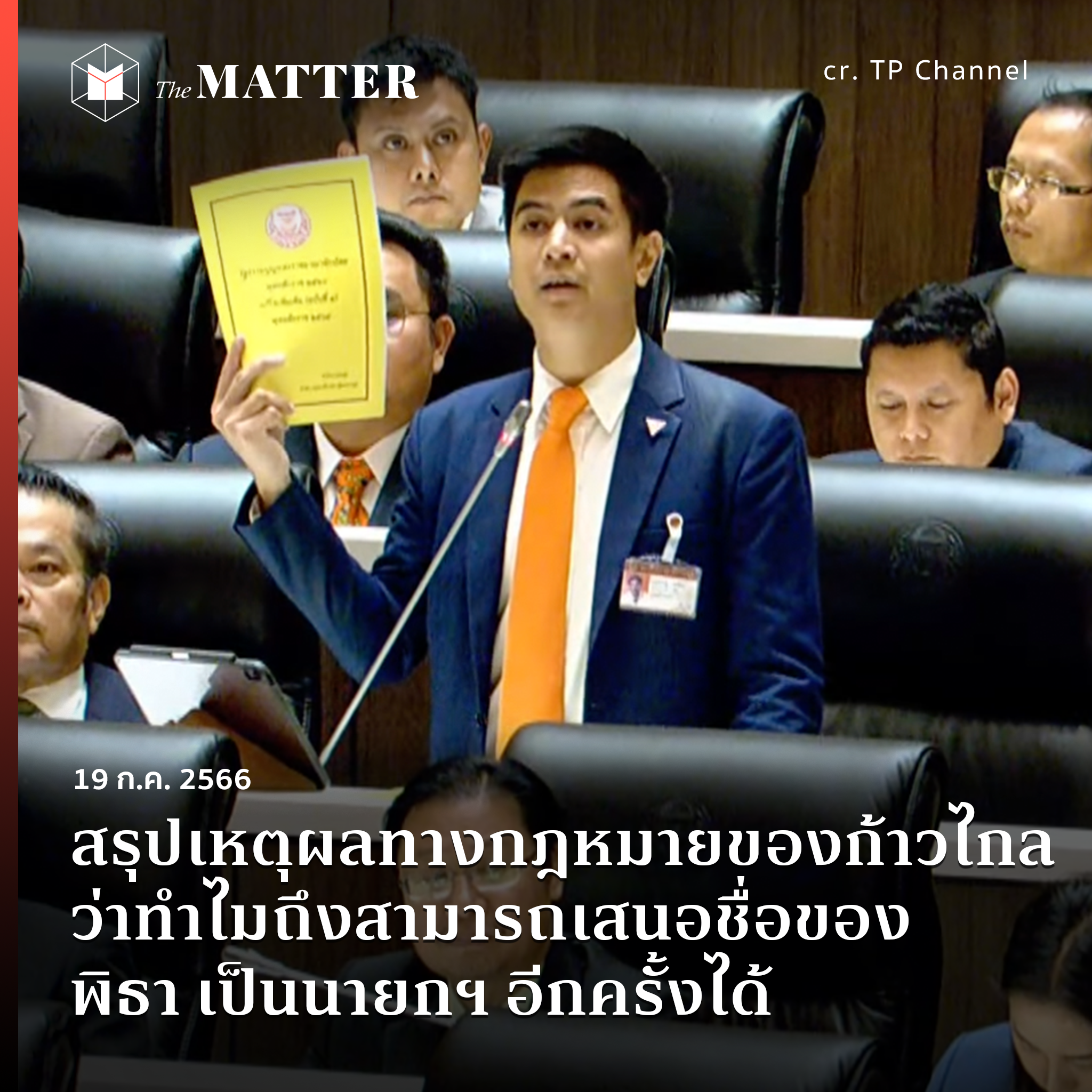 ประเด็นการเสนอชื่อ พิธา ลิ้มเจริญรัตน์ เป็นนายกฯ อีกครั้ง สามารถทำได้หรือไม่ ยังคงเป็นที่ถกเถียงกันอย่างยาวนานกว่า 7 ชั่วโมง ซึ่ง ไอติม— พริษฐ์ วัชรสินธุ ส.ส.จากพรรคก้าวไกล ก็ได้สรุปเหตุผลทางกฎหมายว่าทำไมถึงสามารถเสนอชื่อพิธาอีกครั้งได้