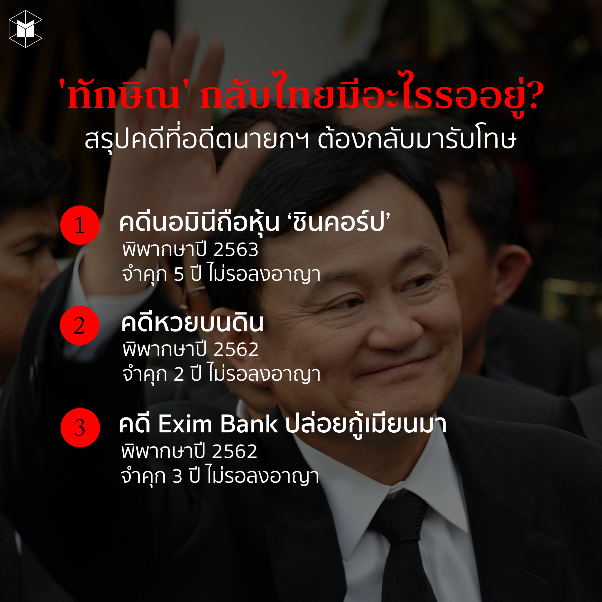 จนถึงตอนนี้ ทักษิณมีคดีที่ศาลพิพากษาและมีโทษจำคุกโดยไม่รอลงอาญาแล้ว 3 คดี คือ