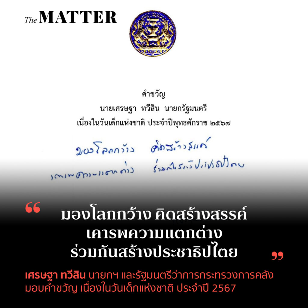 นายกฯ เศรษฐา อธิบายเพิ่มเติมบน X วันนี้ (28 ธันวาคม) ด้วยว่า “เด็กไทยเก่งครับ มีศักยภาพ มีความคิดดี และทันสมัย หน้าที่ของรัฐบาลคือการสนับสนุนให้เด็กไทยเติบโตอย่างมีคุณภาพ มีศักดิ์ศรี มีความภูมิใจในตัวเอง