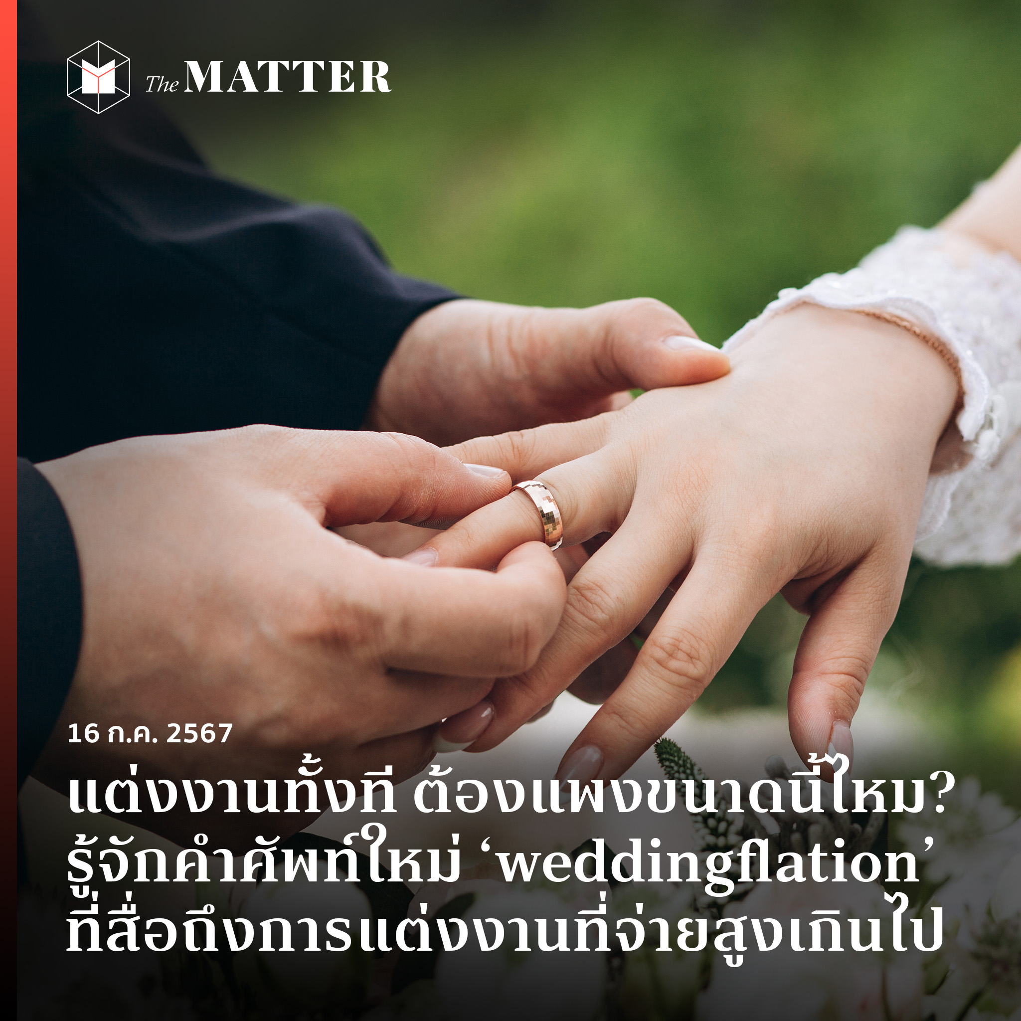 จากปัญหาค่าครองชีพที่ยังคงเพิ่มสูงขึ้นอย่างต่อเนื่องในเกาหลีใต้ ‘ค่าจัดงานแต่งงาน’ ก็เช่นกัน จนมีการบัญญัติศัพท์ใหม่อย่าง ‘weddingflation’ โดยเอาคำว่า ‘แต่งงาน’ (wedding) และ ‘เงินเฟ้อ’ (inflation) มารวมกัน ซึ่งมันสะท้อนปัญหาที่คู่รักในเกาหลีใต้กำลังเผชิญอยู่ได้อย่างชัดเจน