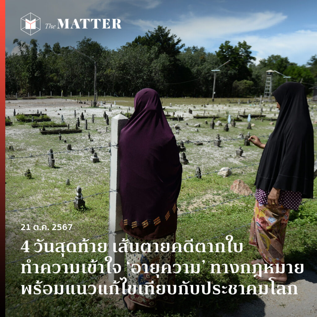 สรุป ได้ว่า สำหรับกฎหมายไทย อายุความจะสิ้นสุดลง หาก ‘ไม่มีการฟ้อง’ และ ‘จำเลยไม่มาศาล’ นั่นเอง ซึ่งคดีตากใบในปัจจุบันมีคำสั่งฟ้องแล้ว แต่ไม่พบผู้ต้องหามารายงานตัวแม้แต่รายเดียว
