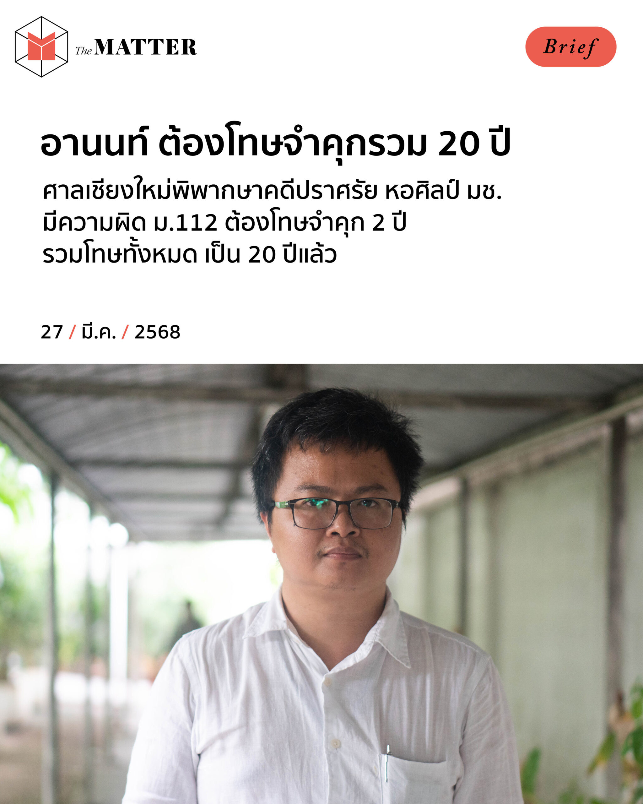 อานนท์ ต้องโทษจำคุกรวมเป็นกว่า 20 ปีแล้ว หลังศาลฯ พิพากษาคดีปราศรัยที่หอศิลป์ มช.