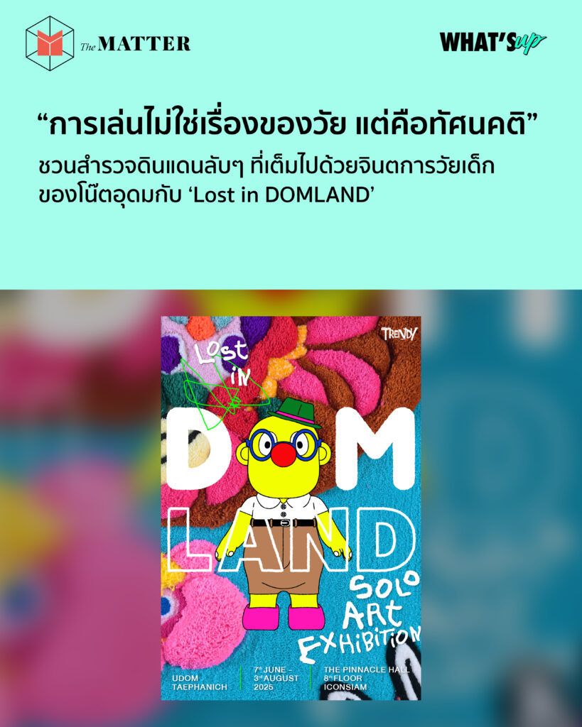 ถ้าพูดถึง โน๊ต-อุดม แต้พานิช หลายคนคงนึกถึงในนามเดี่ยวไมโครโฟน แต่การกลับมาครั้งนี้เขาไม่ได้ชวนเราไปนั่งฟังเดี่ยว เขาชวนเราไปดูผลงานศิลปะของตัวเองใน ‘Lost in DOMLAND’ นิทรรศการที่จะพาทุกคนเข้าไปในดินแดนลับๆ ที่เต็มไปด้วยจินตการในวัยเด็ก กับผลงานศิลปะหลากหลายรูปแบบกว่า 1,000 ชิ้น!
