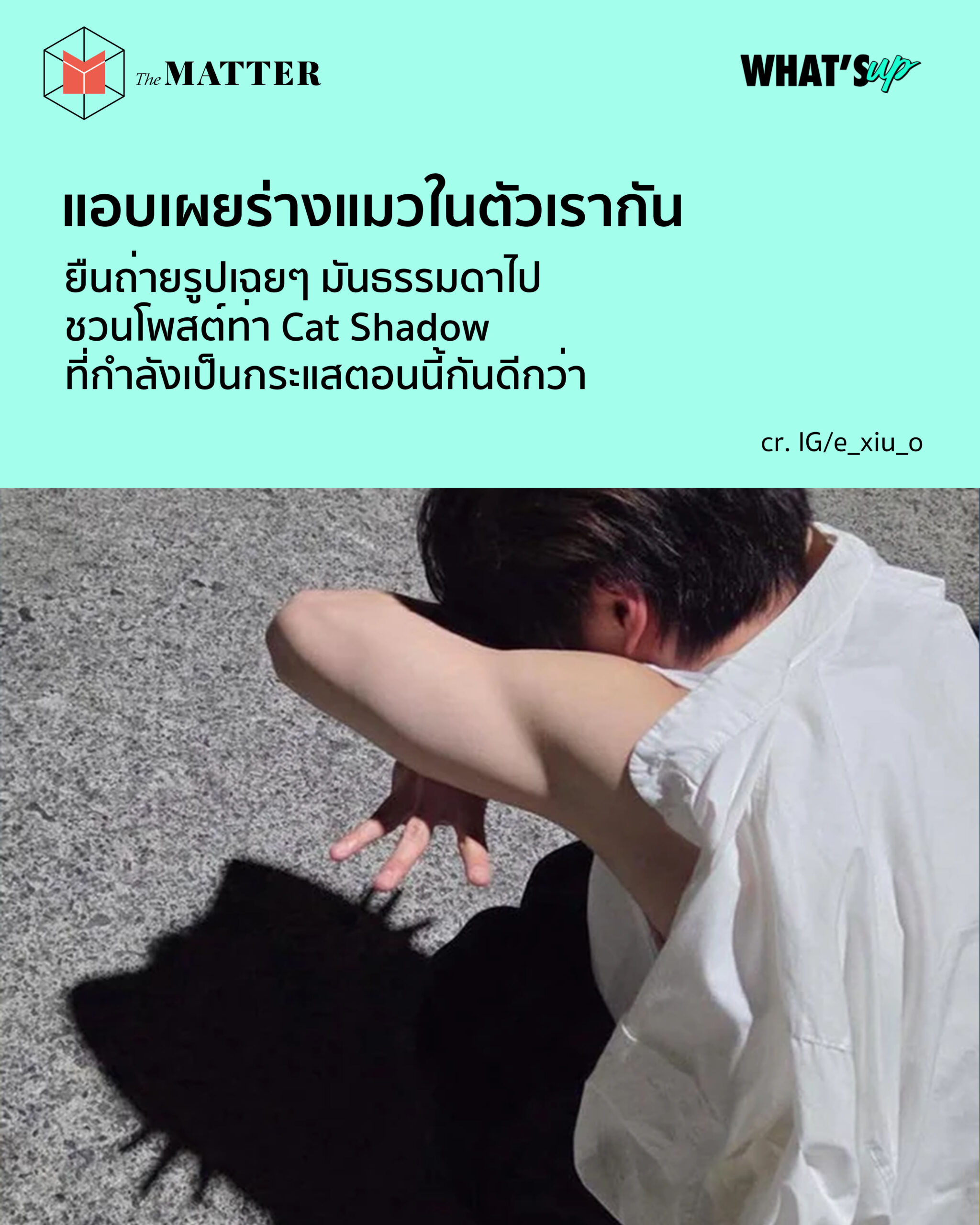 ถ้าจะถ่ายรูปท่าแมว นอกจากจะชู 2 นิ้วคว่ำทำเป็นหูแมว หรือ 3 นิ้วทาบแก้มเป็นหนวดแมวแล้ว อีกหนึ่งเทรนด์ที่น่าลองทำ คงต้องต้องยกให้เทรนด์ถ่ายรูปเงาแมว ที่กำลังเป็นไวรัลอยู่ตอนนี้