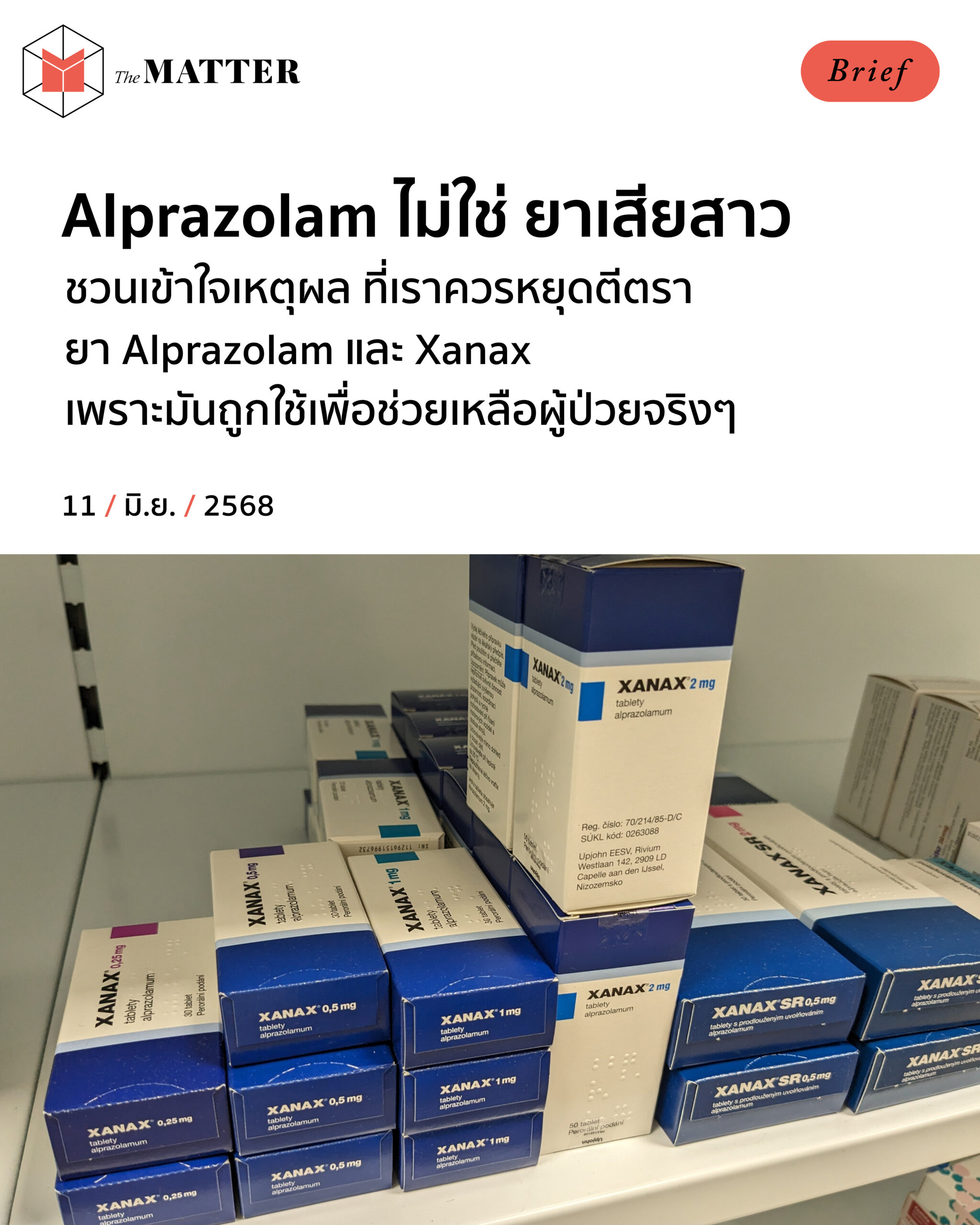 เพราะฉะนั้น มันอาจเป็นความเสี่ยงได้ถ้าหากความเชื่อว่า “Alprazolam / Xanax คือยาเสียสาว” ถูกแพร่กระจายออกไปโดยขาดความเข้าใจที่ถูกต้อง ผู้ป่วยที่ต้องใช้ยาเหล่านี้เป็นประจำก็อาจจะถูกตีตราจากสังคมด้วยเช่นกันว่าใช้ยาเสียสาว แทนที่ผู้คนจะจดจำได้ว่า ยาชนิดนี้เป็นสิ่งสำคัญเพื่อช่วยเหลืออาการของผู้ป่วยด้าน Mental Health จริงๆ