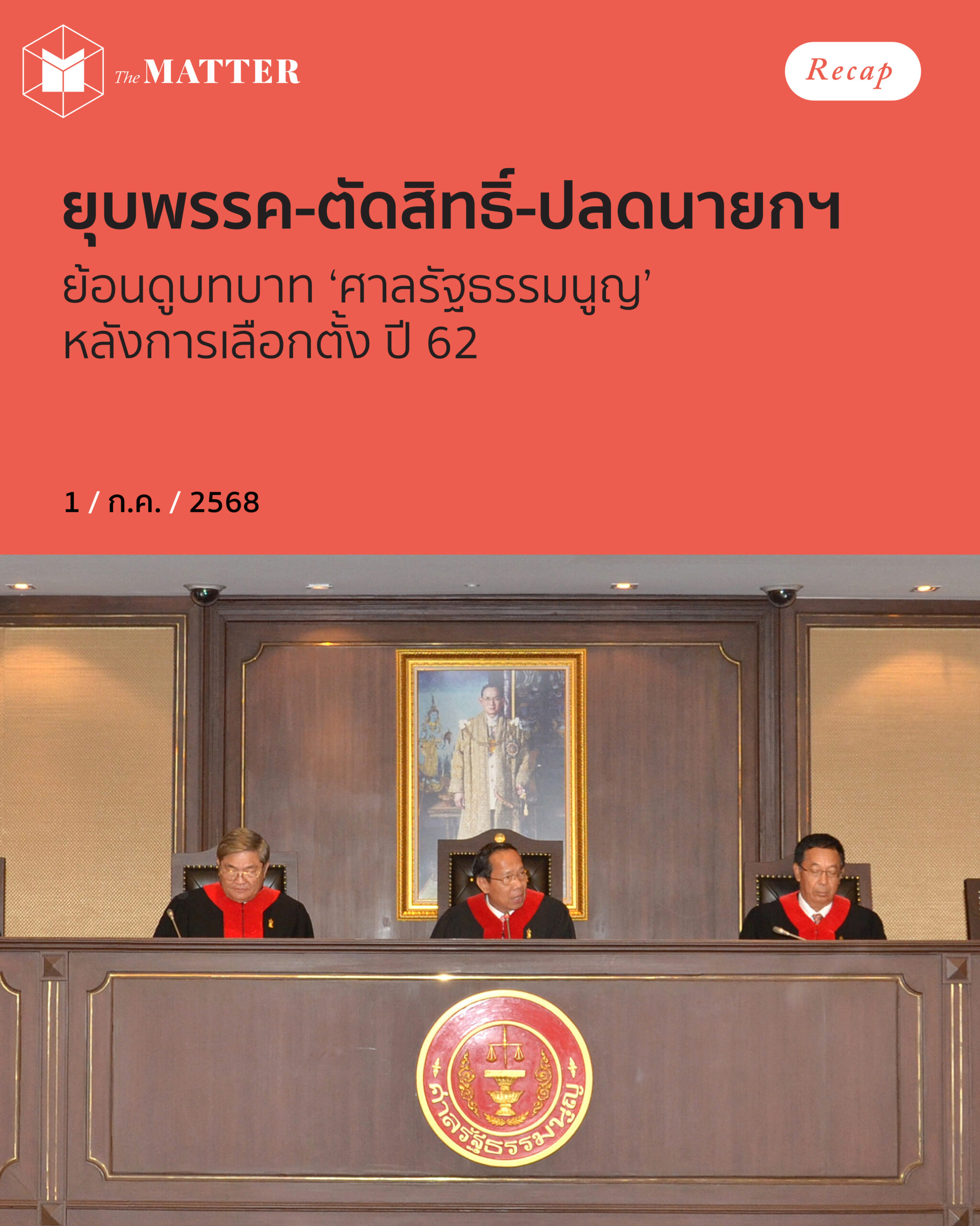 ย้อนกลับไปเมื่อวันที่ 24 มีนาคม ปี 2562 ประเทศไทยมีการจัดการเลือกตั้งทั่วไป หลังจากที่มีการรัฐประหารโดยพลเอก ประยุทธ์ จันทร์โอชา ซึ่งนับเป็นการเลือกตั้งครั้งแรกในรอบ 8 ปี แต่หลังจากนั้น เราจะเห็นเหมือนกันว่า ‘ศาลรัฐธรรมนูญ’ ได้เข้ามามีบทบาททางการเมืองไทยมากมาย ตั้งแต่การสั่งตัดสิทธิ์ทางการเมือง ยุบพรรค ไปจนถึงวินิจฉัยให้อดีตนายกฯ พ้นจากตำแหน่ง ดังนั้น วันนี้ The MATTER เลยอยากชวนทุกคนมาย้อนดูบทบาทที่ผ่านมาของศาลรัฐธรรมนูญไปพร้อมๆ กัน