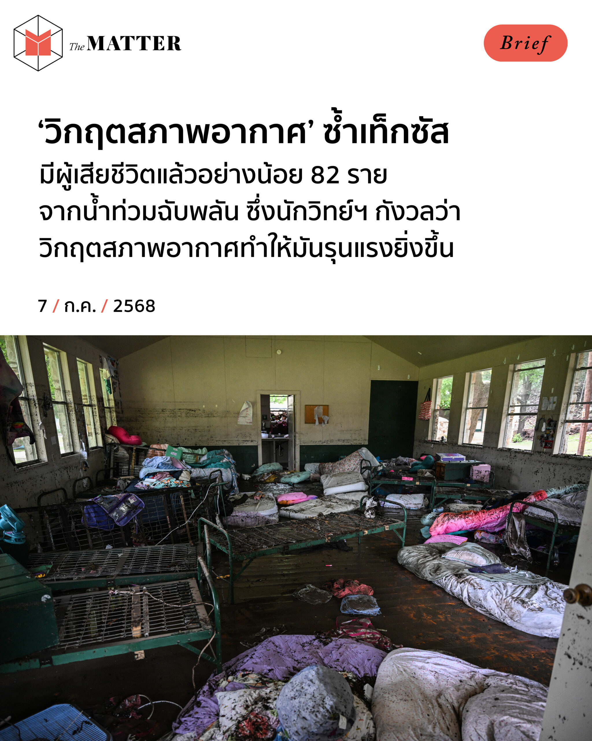 เมื่อวันที่ 4 กรกฎาคมที่ผ่านมา เกิดเหตุการณ์น้ำท่วมฉับพลันในรัฐเท็กซัส สหรัฐฯ ซึ่งทำให้มีผู้เสียชีวิตแล้วอย่างน้อย 82 ราย ซึ่งในจำนวนผู้เสียชีวิตเป็นเด็กอย่างน้อย 28 ราย และมีผู้สูญหายอีกหลายราย ซึ่งส่วนใหญ่เป็นเด็กๆ ที่มาเข้าค่ายฤดูร้อนริมแม่น้ำ
