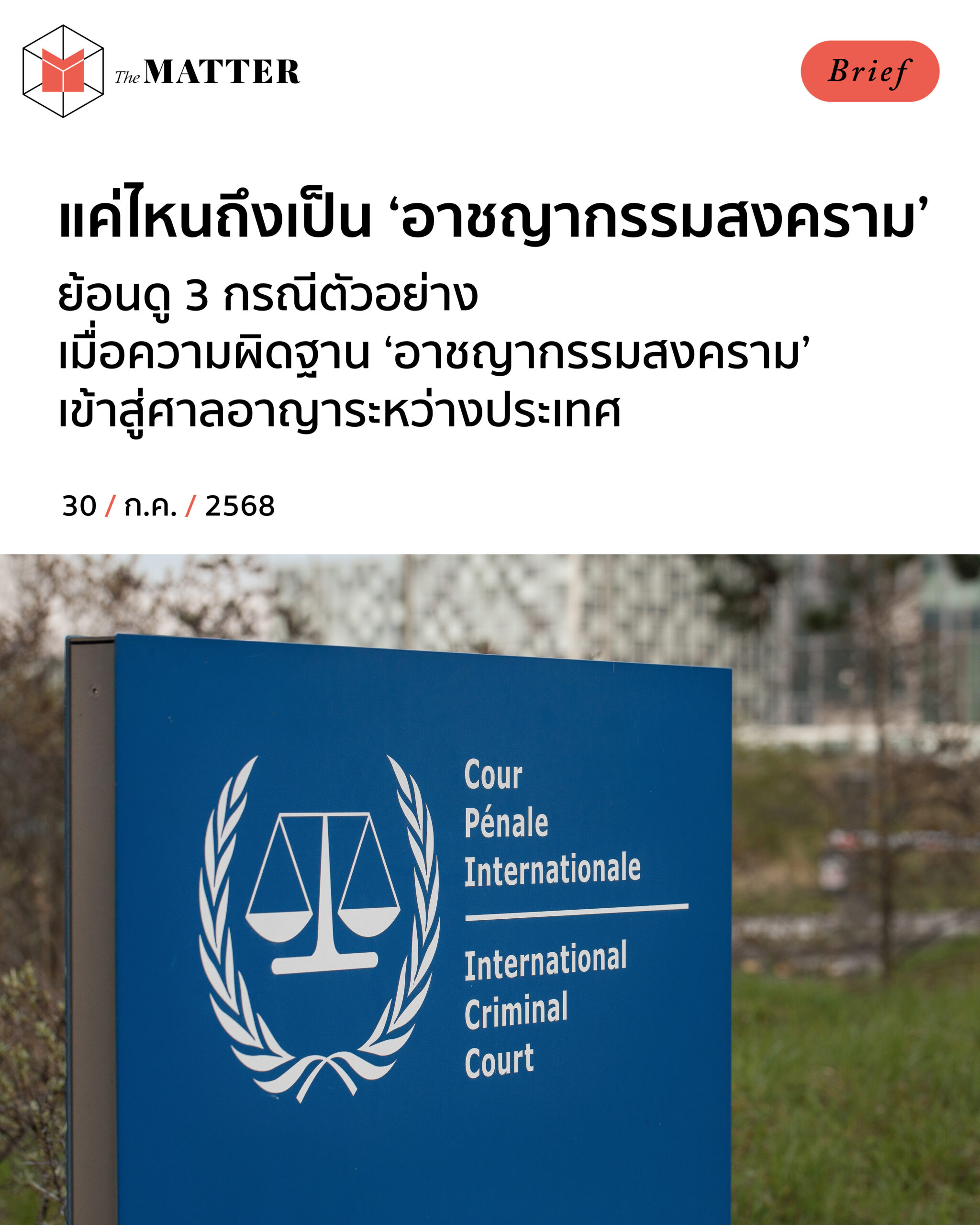 จากกรณีการโจมตีโรงพยาบาล รวมถึงบ้านเรือนบริเวณชายแดนไทย-กัมพูชา จนวันนี้ (30 กรกฎาคม 2568) มีรายงานจำนวนผู้เสียชีวิต 15 ราย และผู้บาดเจ็บอีกหลายราย สังคมก็พูดถึงความผิดฐาน ‘อาชญากรรมสงคราม’ (War Crimes) กันอย่างกว้างขวาง