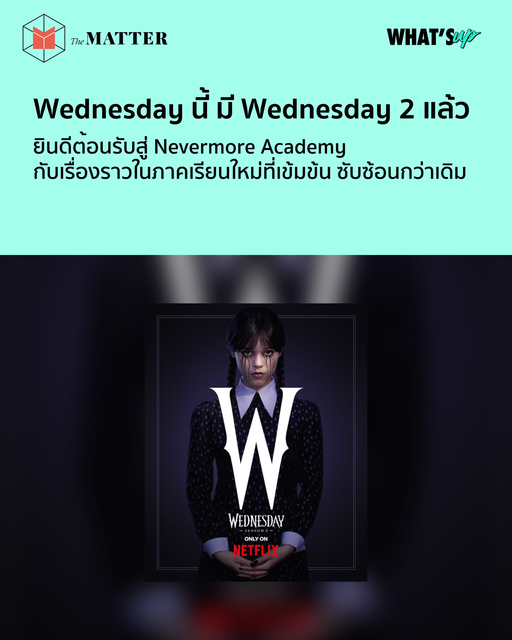 เวนส์เดย์ (Wednesday) สาวหน้าตาย ผู้คลั่งไคล้ในความสยองขวัญ จากครอบครัวแอดดัมส์ (The Addams Family) กำลังกลับมาสานต่อเรื่องราวความโกลาหลครั้งใหม่ใน Wednesday 2 พร้อมเหล่าผองเพื่อนที่มากับปริศนาและปัญหาใหม่ๆ ในภาคเรียนใหม่นี้