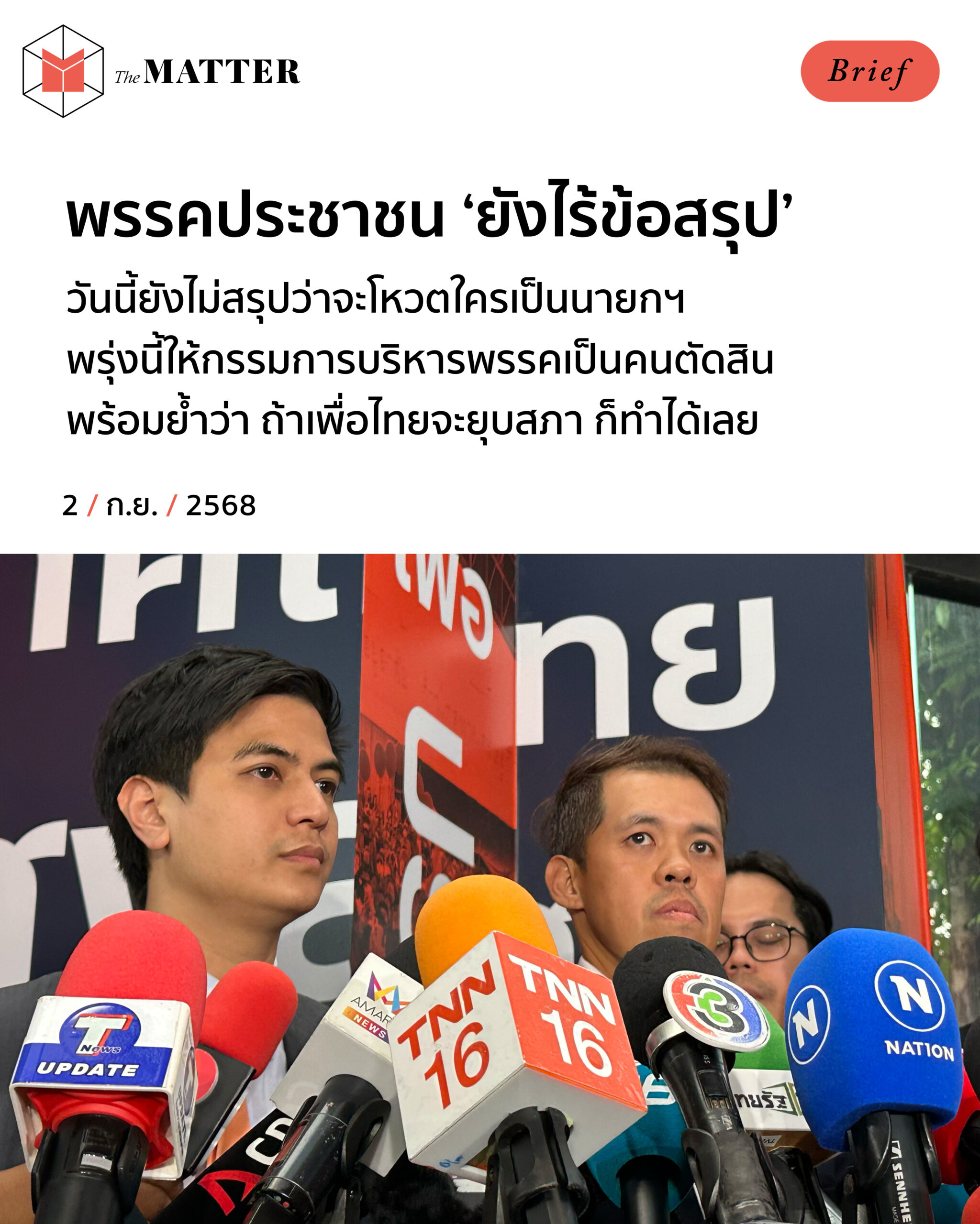 นายกฯ คนต่อไปจะเป็นใคร? เป็นสิ่งที่ยังไม่ได้คำตอบอย่างเป็นทางการจากพรรคประชาชนในวันนี้
