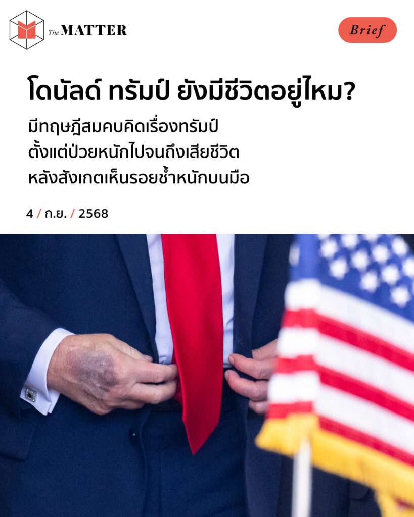 ย้อนกลับไปช่วงก่อนหน้านี้ #Trumpdead เคยติดเทรนด์บนเอ็กซ์ ท่ามกลางเสียงวิพากษ์วิจารณ์ ซึ่งประเด็นหลักๆ ของ ‘ข่าวลือ’ เกิดขึ้นมาจากที่มีคนสังเกตเห็นรอยฟกช้ำรุนแรงบนหลังมือขวาของทรัมป์ ที่บางครั้งเหมือนจะถูกปกปิดด้วยรองพื้นด้วย