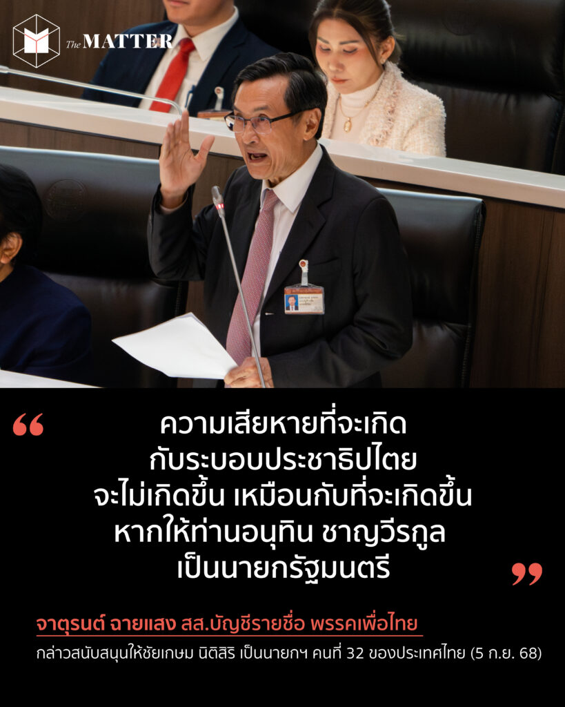 วันนี้ (5 กันยายน 2568) จาตุรนต์ ฉายแสง สส.บัญชีรายชื่อ พรรคเพื่อไทย กล่าวอภิปรายระหว่างการประชุมสภาผู้แทนราษฎร เพื่อพิจารณาให้ความเห็นชอบบุคคลเป็นนายกรัฐมนตรี คนที่ 32 ของประเทศไทย