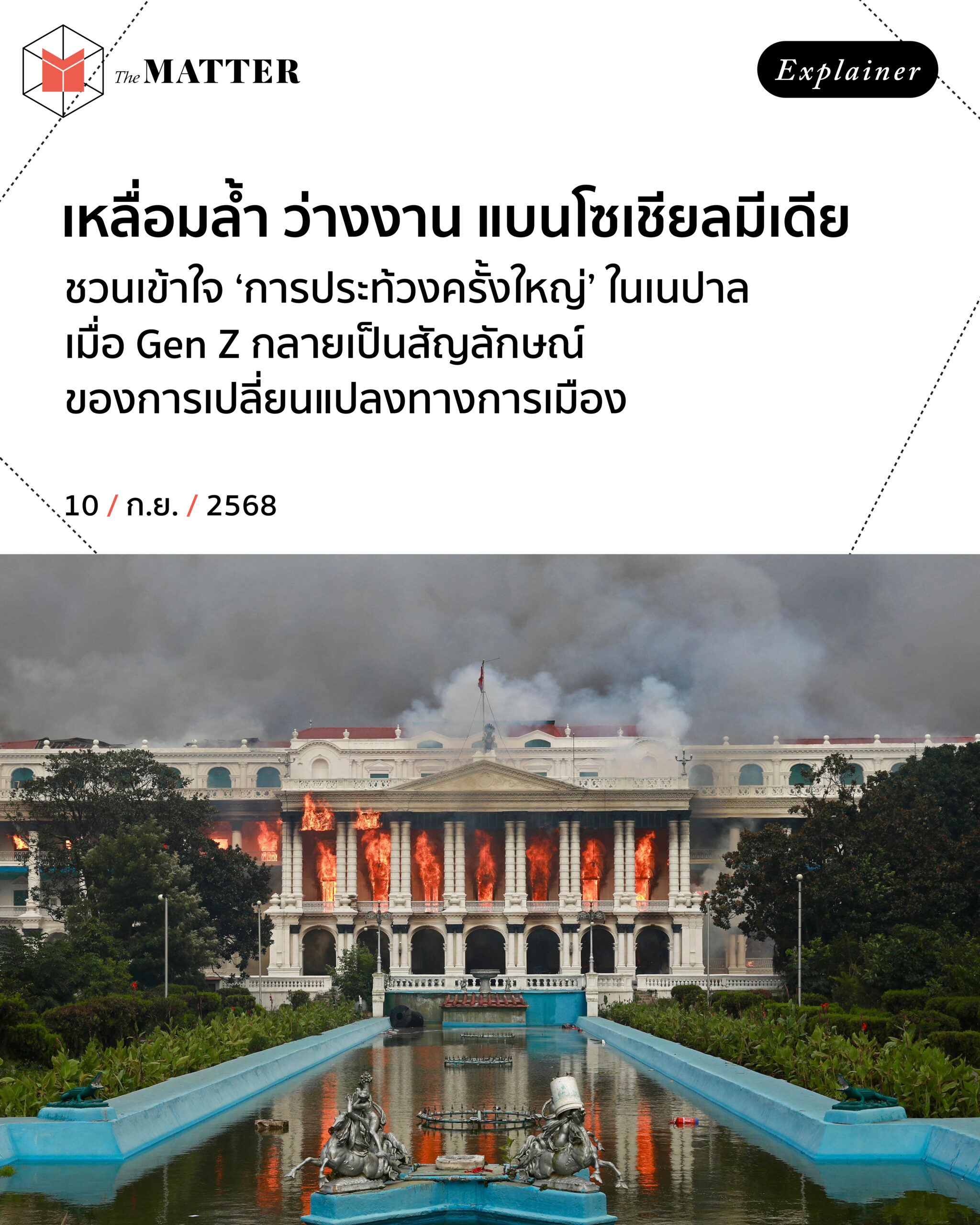การประท้วงครั้งนี้เกิดขึ้นจากอะไร? และมีมิติใดบ้างที่ทำให้ความไม่พอใจทวีความรุนแรงถึงขั้นนี้? วันนี้ The MATTER สรุปที่มาที่ไปและปัจจัยต่างๆ ของการประท้วงครั้งใหญ่ในเนปาล