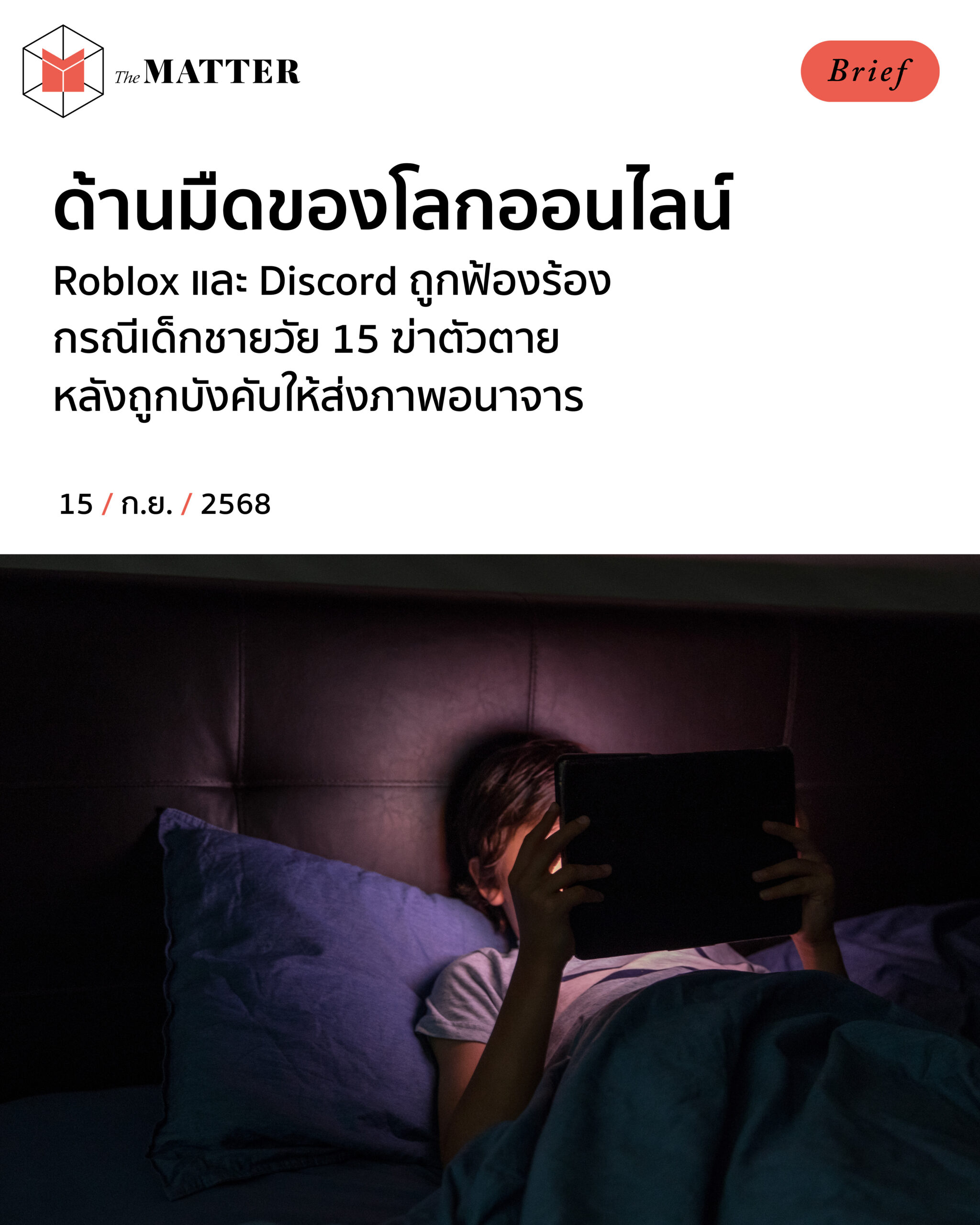 แม่ของเด็กชายวัย 15 ปี ในแคลิฟอร์เนีย ฟ้องร้อง Roblox และ Discord หลังลูกชายฆ่าตัวตาย โดยกล่าวหาว่าลูกชายถูกครอบงำ และบังคับให้ส่งภาพอนาจารผ่านแอปฯ ดังกล่าว