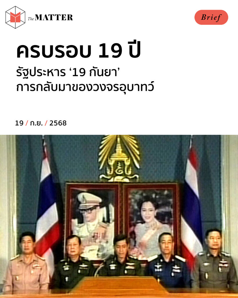 วันนี้ (19 กันยายน 2568) ตรงกับวันครบรอบ 19 ปี ของการรัฐประหาร ในวันที่ 19 กันยายน 2549 โดยกองทัพซึ่งนำโดย พล.อ.สนธิ บุญยรัตกลิน อดีตผู้บัญชาการกองทัพบก ที่ยึดอำนาจจากอดีตนายกฯ ทักษิณ ชินวัตร ซึ่งในเวลานั้นอยู่ระหว่างการเดินทางไปสหรัฐฯ เพื่อเข้าร่วมการประชุมขององค์การสหประชาชาติ