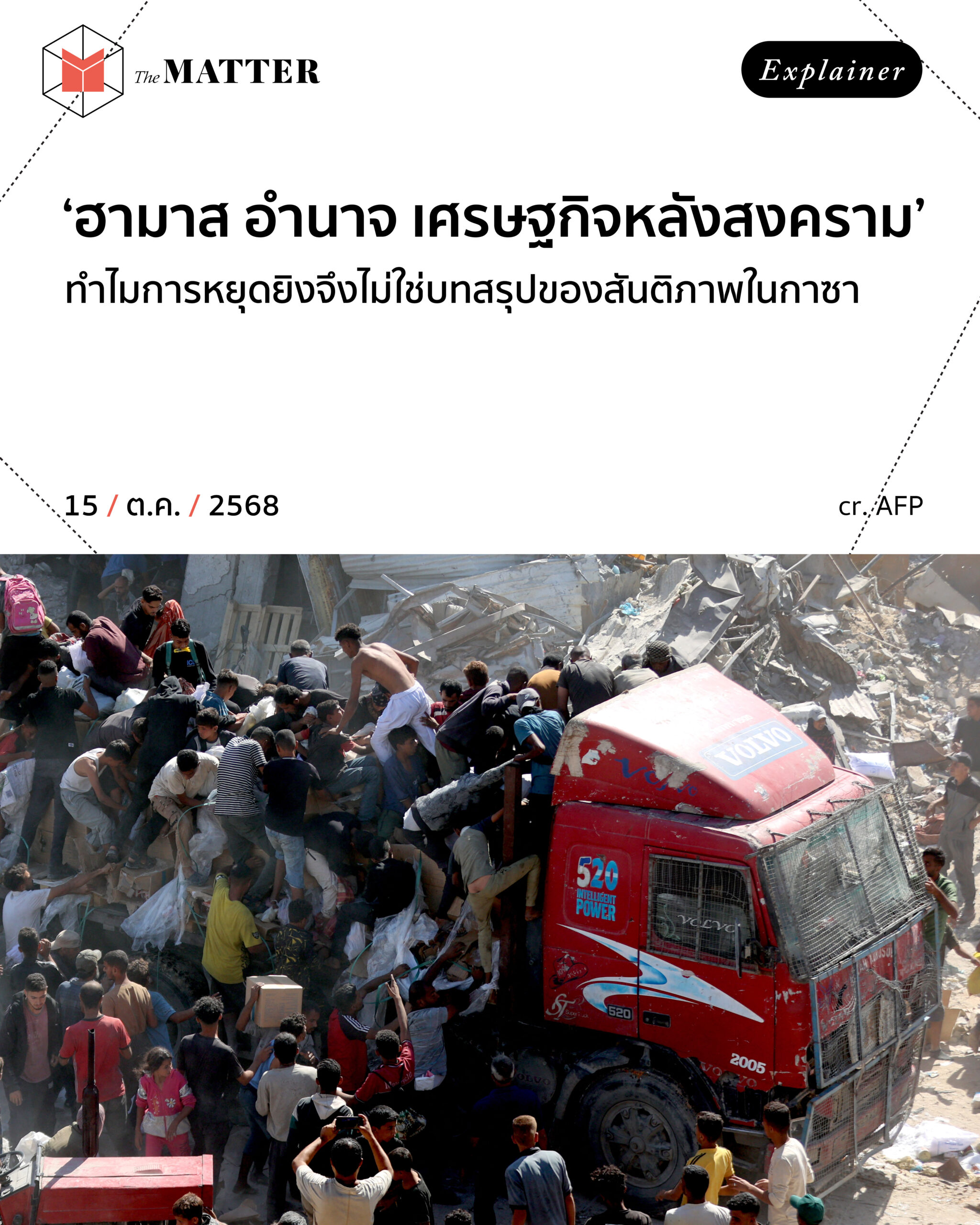 ข้อตกลงดังกล่าวเปิดทางให้เกิดการปล่อยตัวประกัน การถอนกำลัง และการส่งความช่วยเหลือด้านมนุษยธรรมเข้าสู่ฉนวนกาซาอีกครั้ง แต่แม้จะถูกยกให้เป็น ‘เหตุการณ์ประวัติศาสตร์’ ทว่าผู้เชี่ยวชาญจำนวนมากกลับมองว่า ‘การหยุดยิง ไม่ได้เท่ากับสันติภาพ’