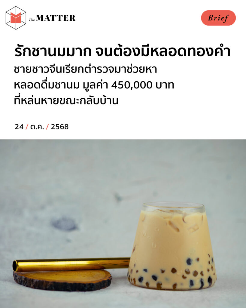 ชายชาวจีนคนหนึ่งชอบดื่มชานมมาก จนสั่งทำ ‘หลอดทองคำ’ ขึ้นเป็นพิเศษสำหรับดื่มชานมโดยเฉพาะ แต่กลับทำหล่นหายขณะปั่นจักรยานกลับบ้าน